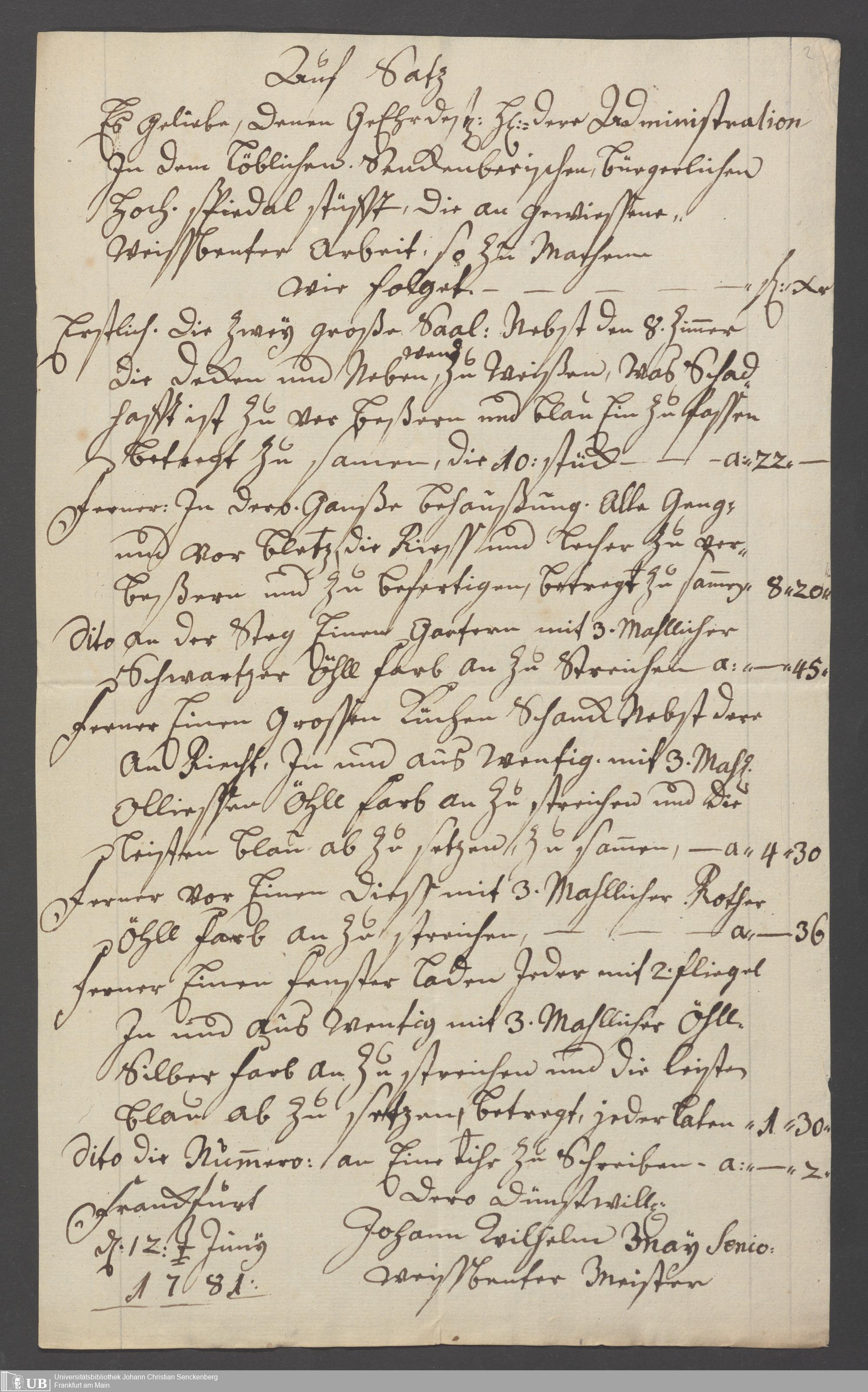 B 5 Dr. Senckenbergische Stiftung, 191 - Überschläge der Handwerker zur Fertigstellung des Bürgerhospitals