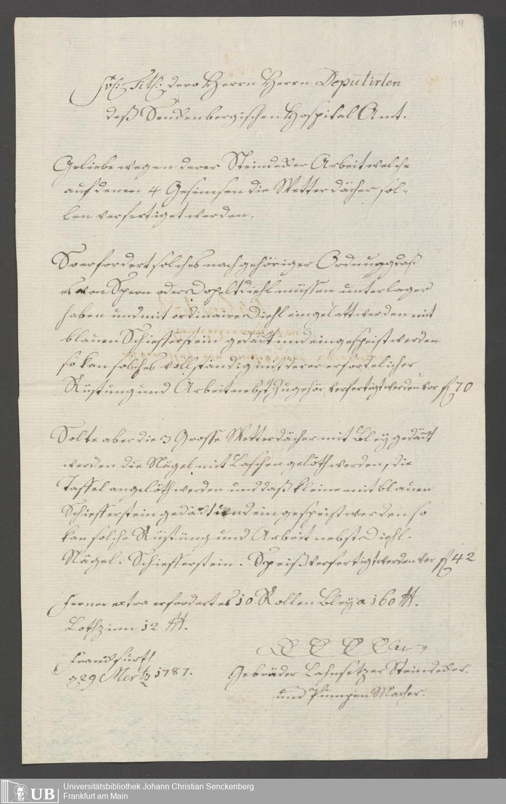 B 5 Dr. Senckenbergische Stiftung, 191 - Überschläge der Handwerker zur Fertigstellung des Bürgerhospitals