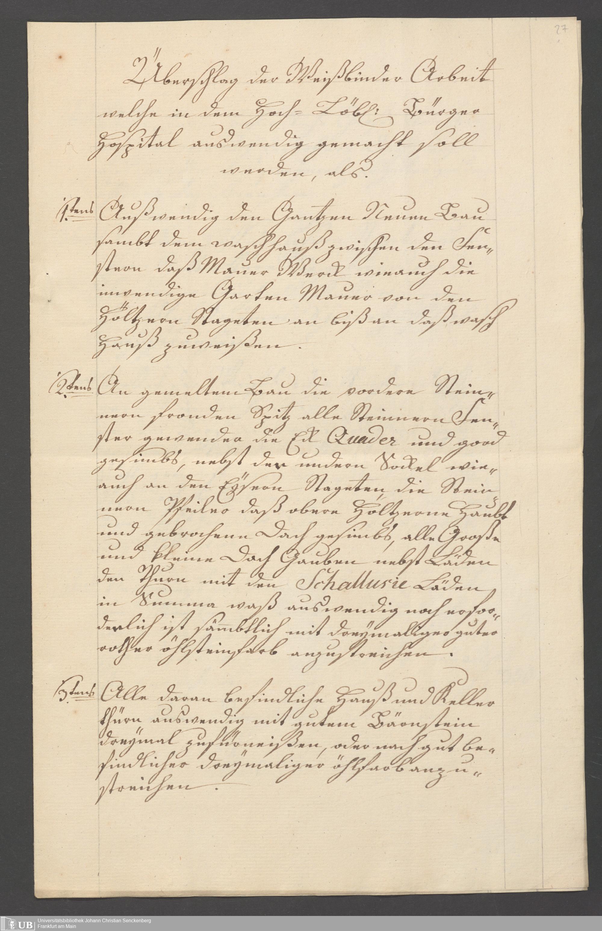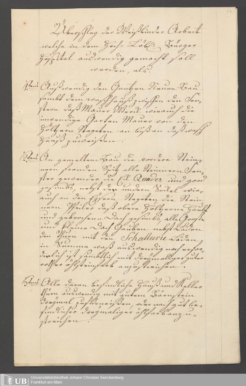 B 5 Dr. Senckenbergische Stiftung, 191 - Überschläge der Handwerker zur Fertigstellung des Bürgerhospitals