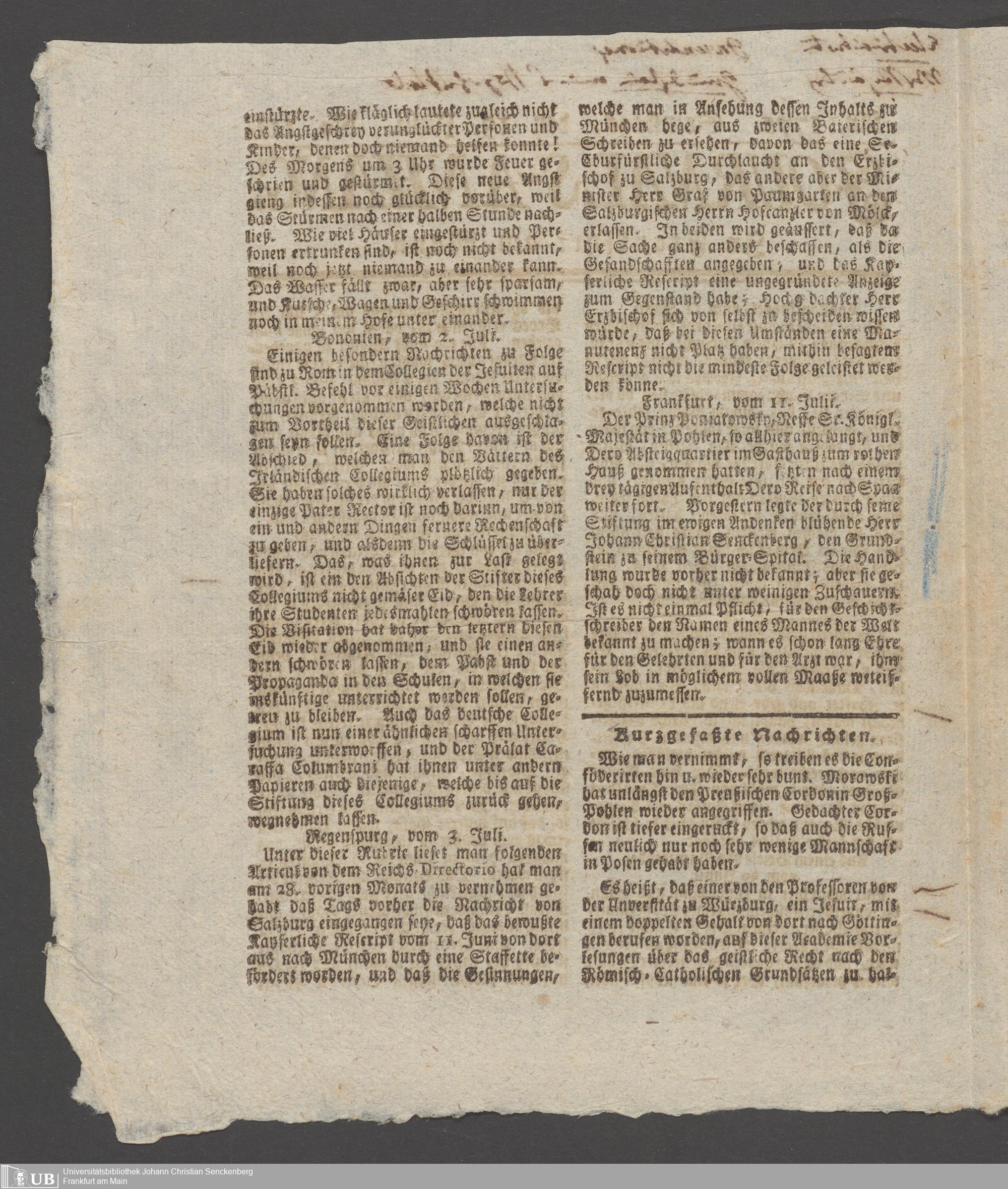Nachlass Johann Christian Senckenberg