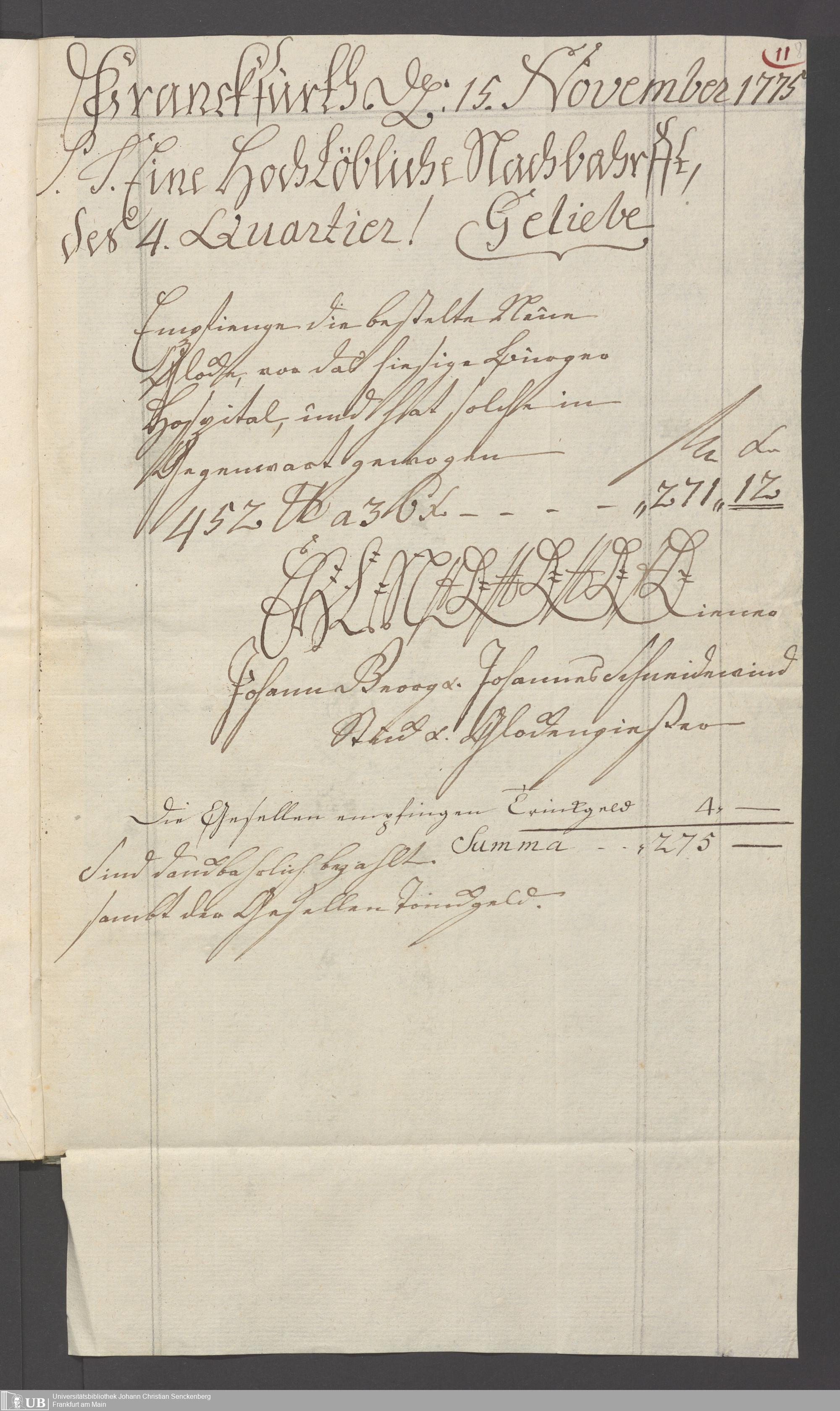 B 5 Dr. Senckenbergische Stiftung, 193 - Subscription für die Stundenglocke im Bürgerhospital