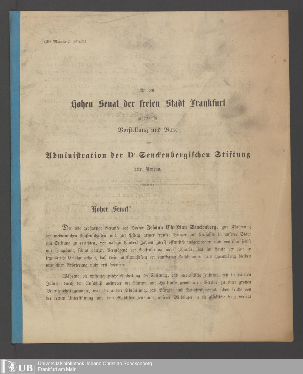 B 5 Dr. Senckenbergische Stiftung, 196 - Neubau in der Stiftsstraße