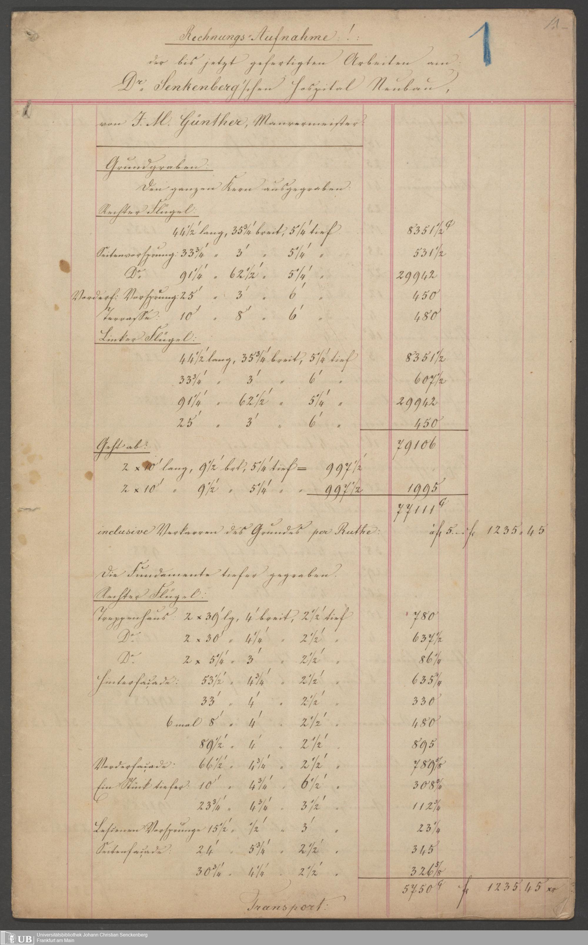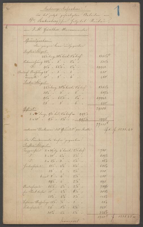 B 5 Dr. Senckenbergische Stiftung, 201 - Rechnungsaufnahme über ausgeführte Arbeiten durch Maurermeister Günther