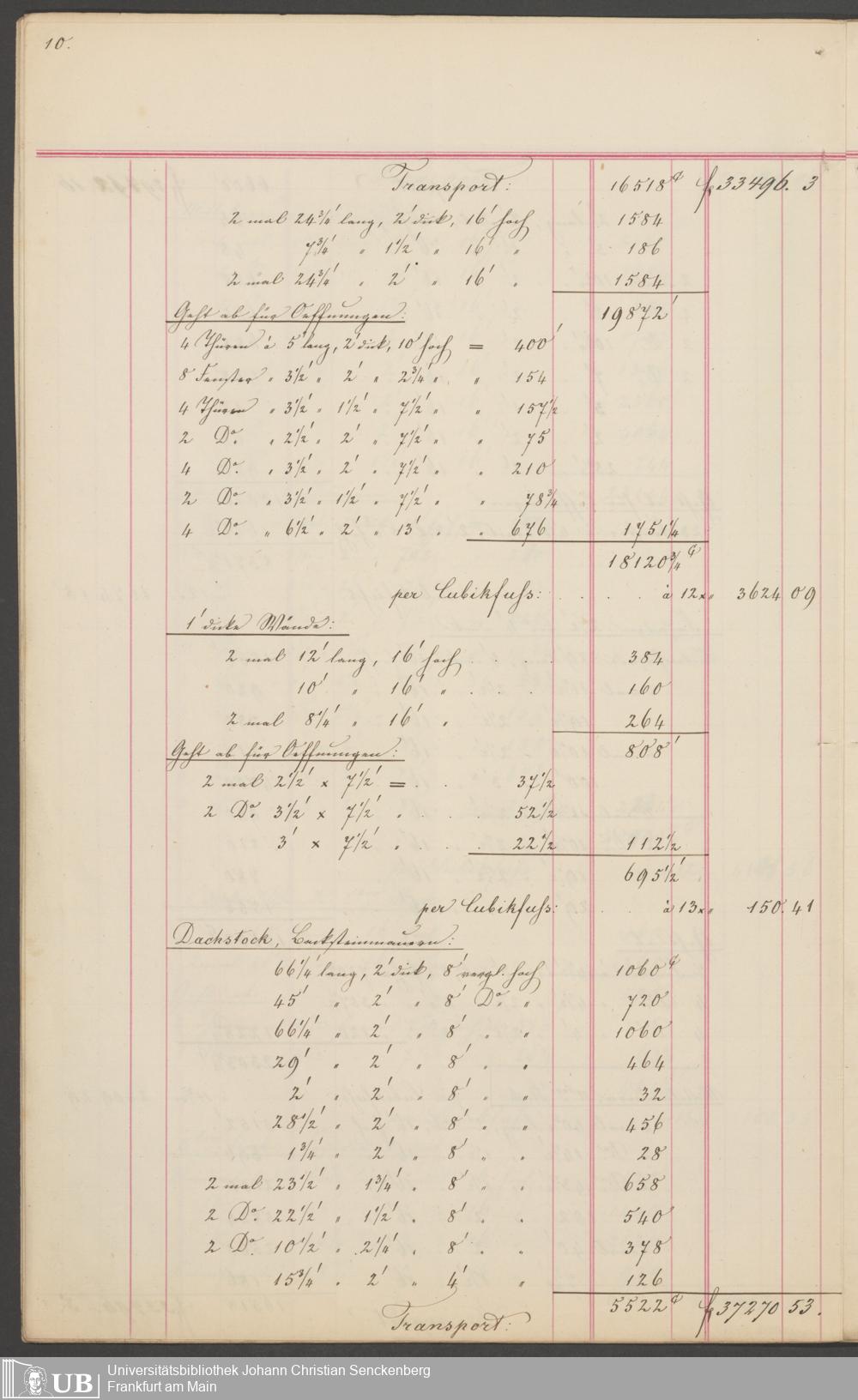 B 5 Dr. Senckenbergische Stiftung, 201 - Rechnungsaufnahme über ausgeführte Arbeiten durch Maurermeister Günther