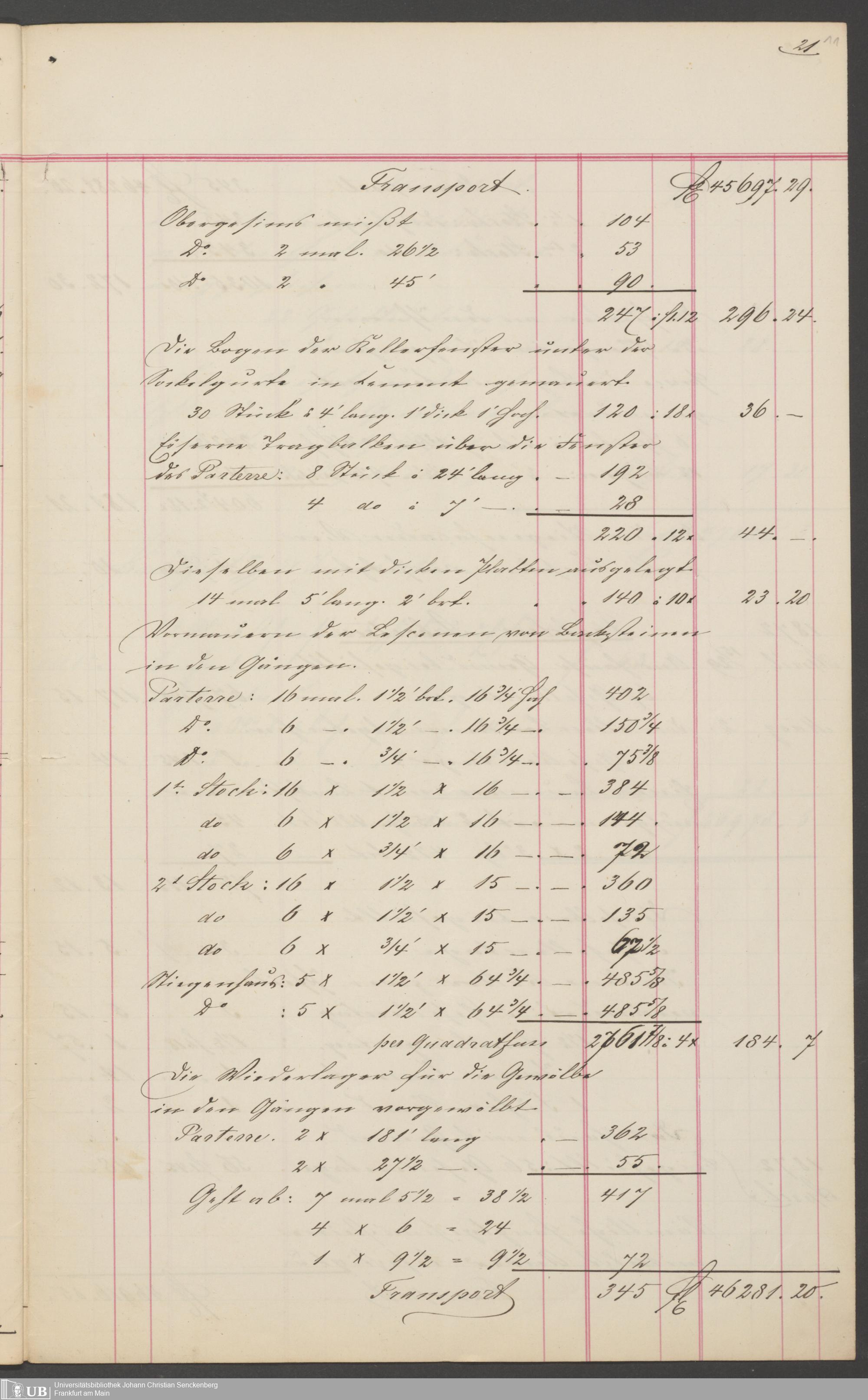 B 5 Dr. Senckenbergische Stiftung, 201 - Rechnungsaufnahme über ausgeführte Arbeiten durch Maurermeister Günther