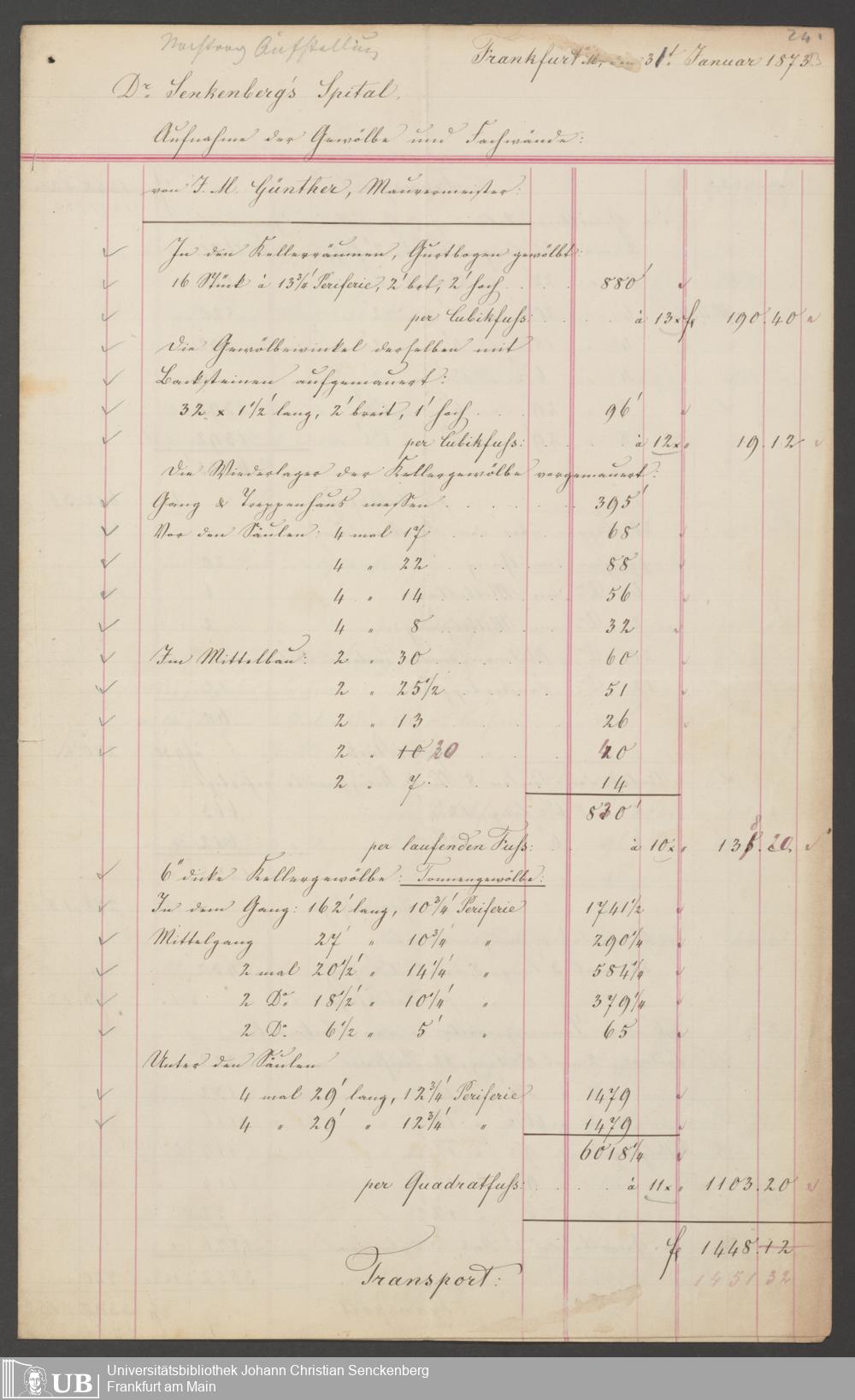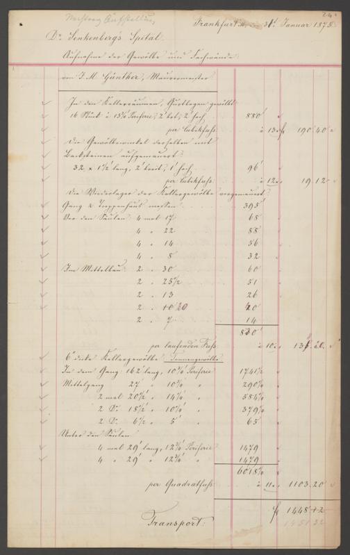B 5 Dr. Senckenbergische Stiftung, 201 - Rechnungsaufnahme über ausgeführte Arbeiten durch Maurermeister Günther