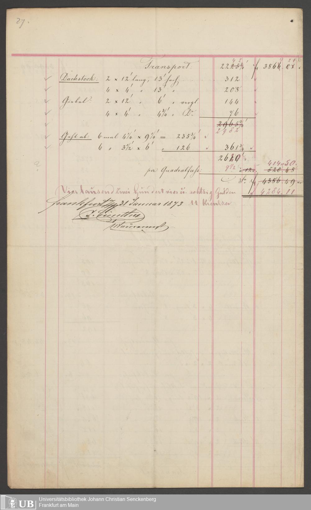 B 5 Dr. Senckenbergische Stiftung, 201 - Rechnungsaufnahme über ausgeführte Arbeiten durch Maurermeister Günther