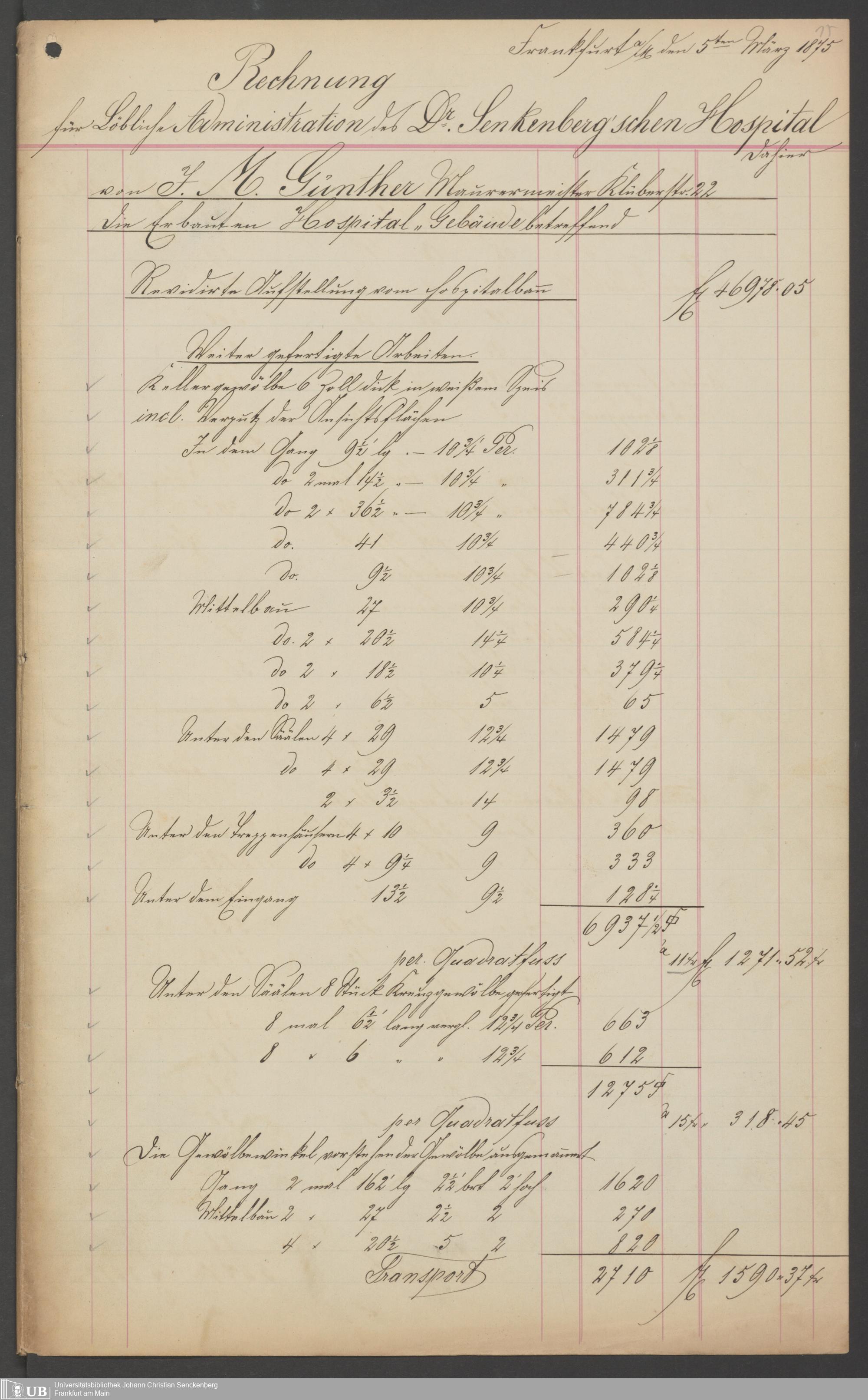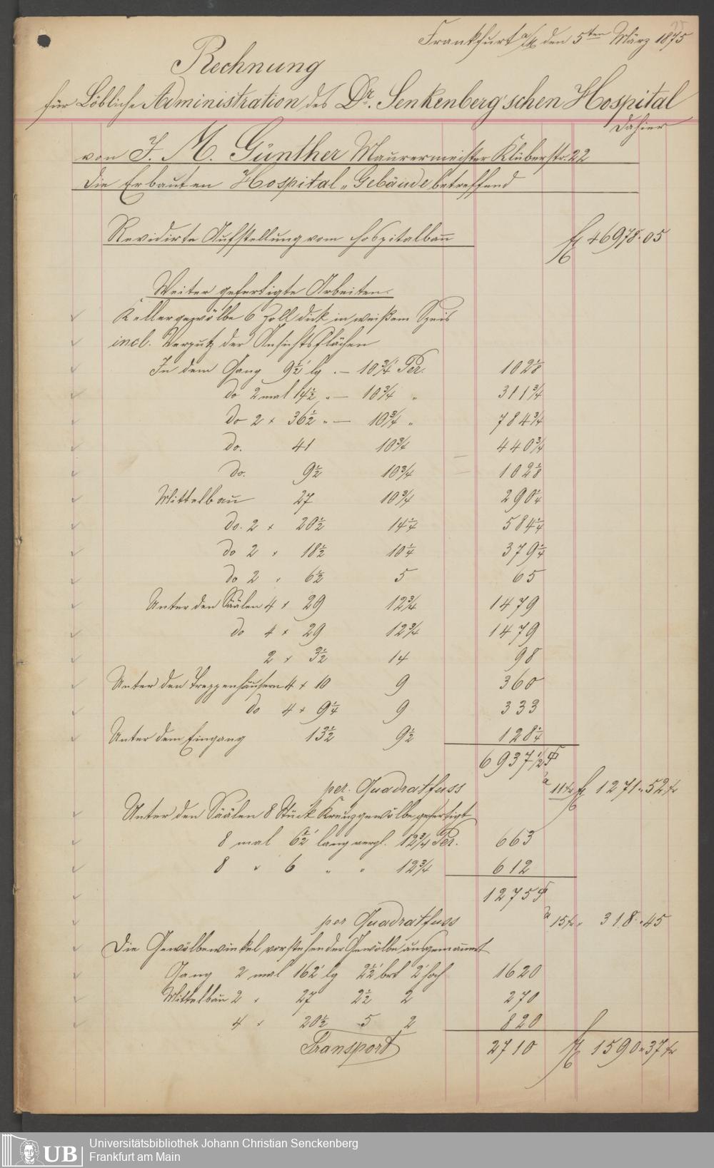 B 5 Dr. Senckenbergische Stiftung, 201 - Rechnungsaufnahme über ausgeführte Arbeiten durch Maurermeister Günther