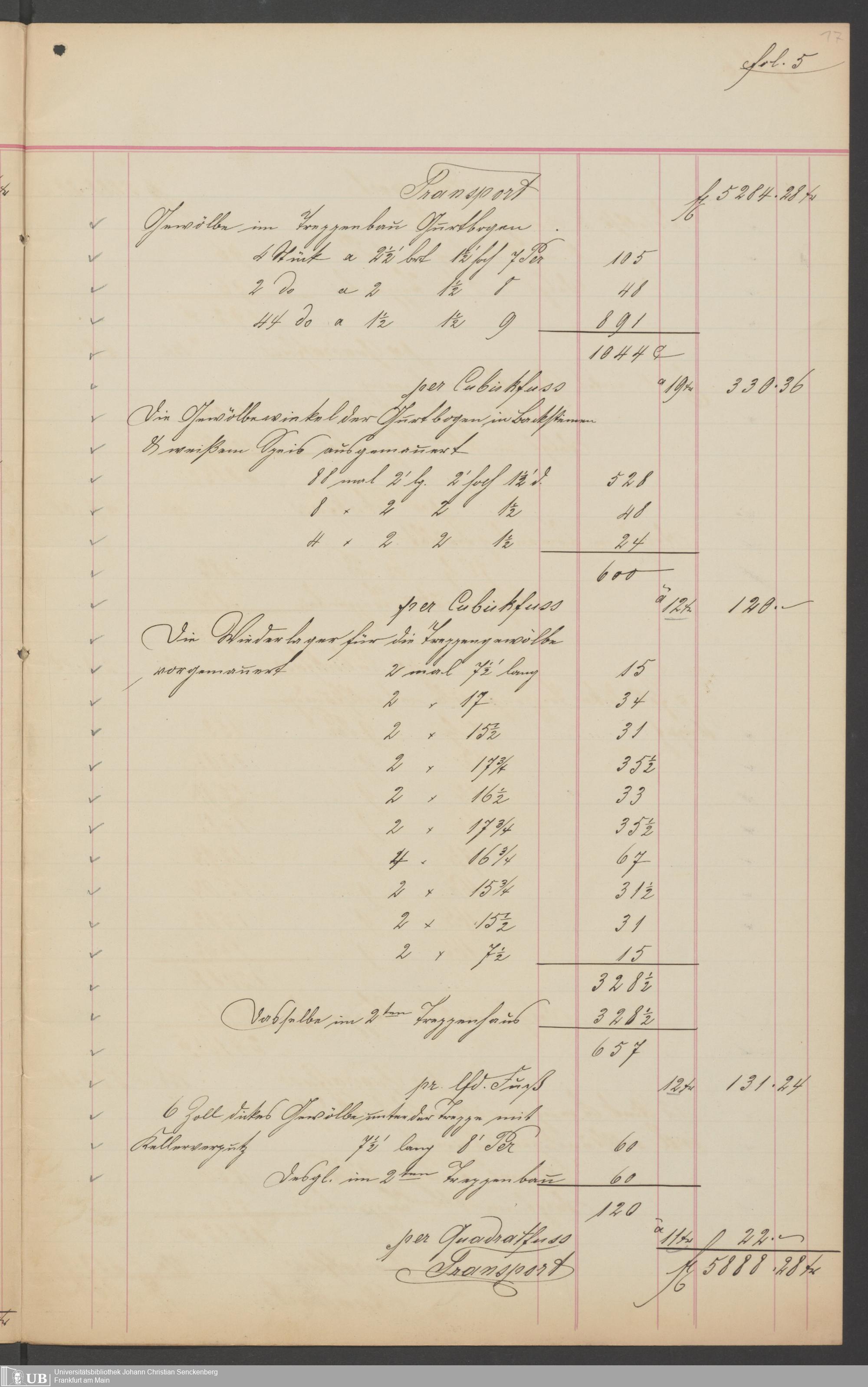 B 5 Dr. Senckenbergische Stiftung, 201 - Rechnungsaufnahme über ausgeführte Arbeiten durch Maurermeister Günther
