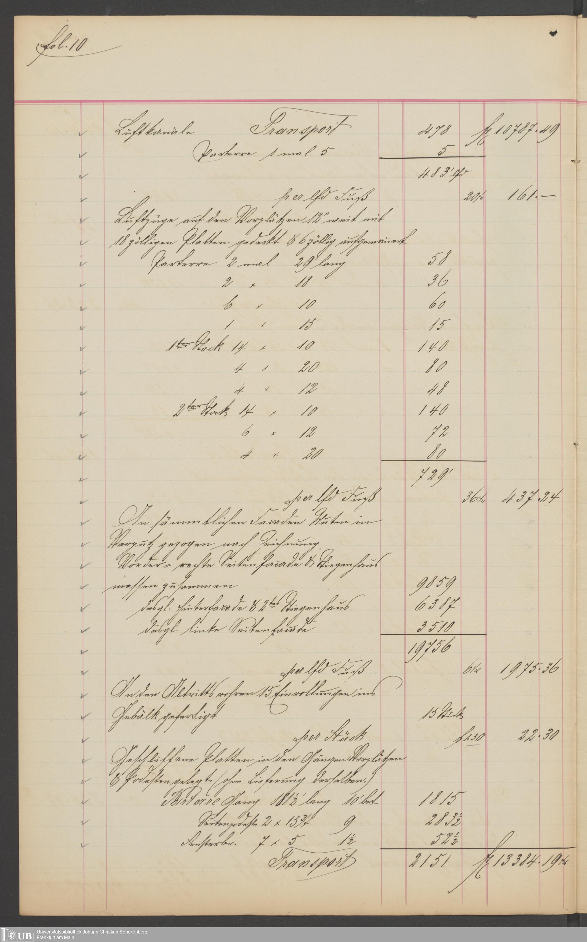 B 5 Dr. Senckenbergische Stiftung, 201 - Rechnungsaufnahme über ausgeführte Arbeiten durch Maurermeister Günther