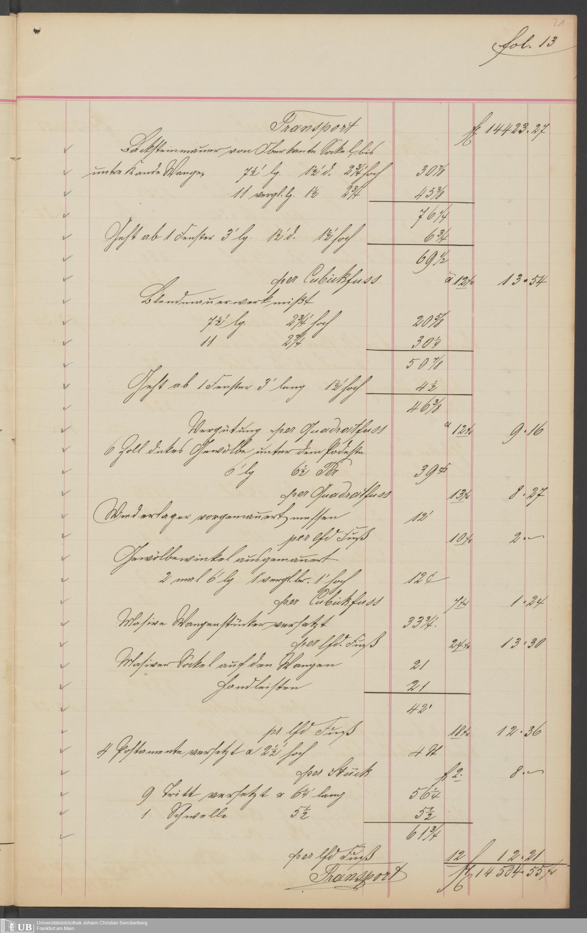 B 5 Dr. Senckenbergische Stiftung, 201 - Rechnungsaufnahme über ausgeführte Arbeiten durch Maurermeister Günther