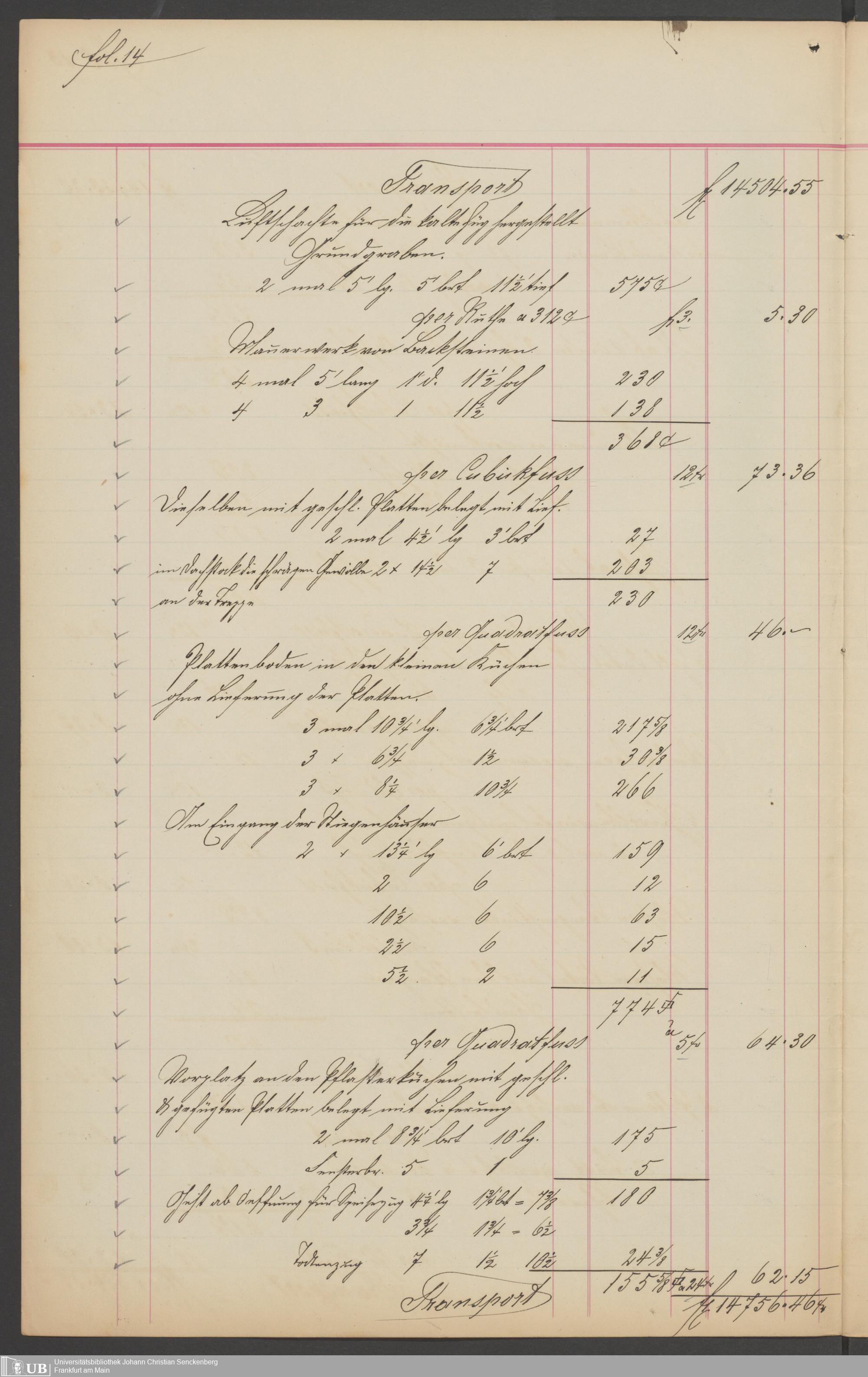 B 5 Dr. Senckenbergische Stiftung, 201 - Rechnungsaufnahme über ausgeführte Arbeiten durch Maurermeister Günther