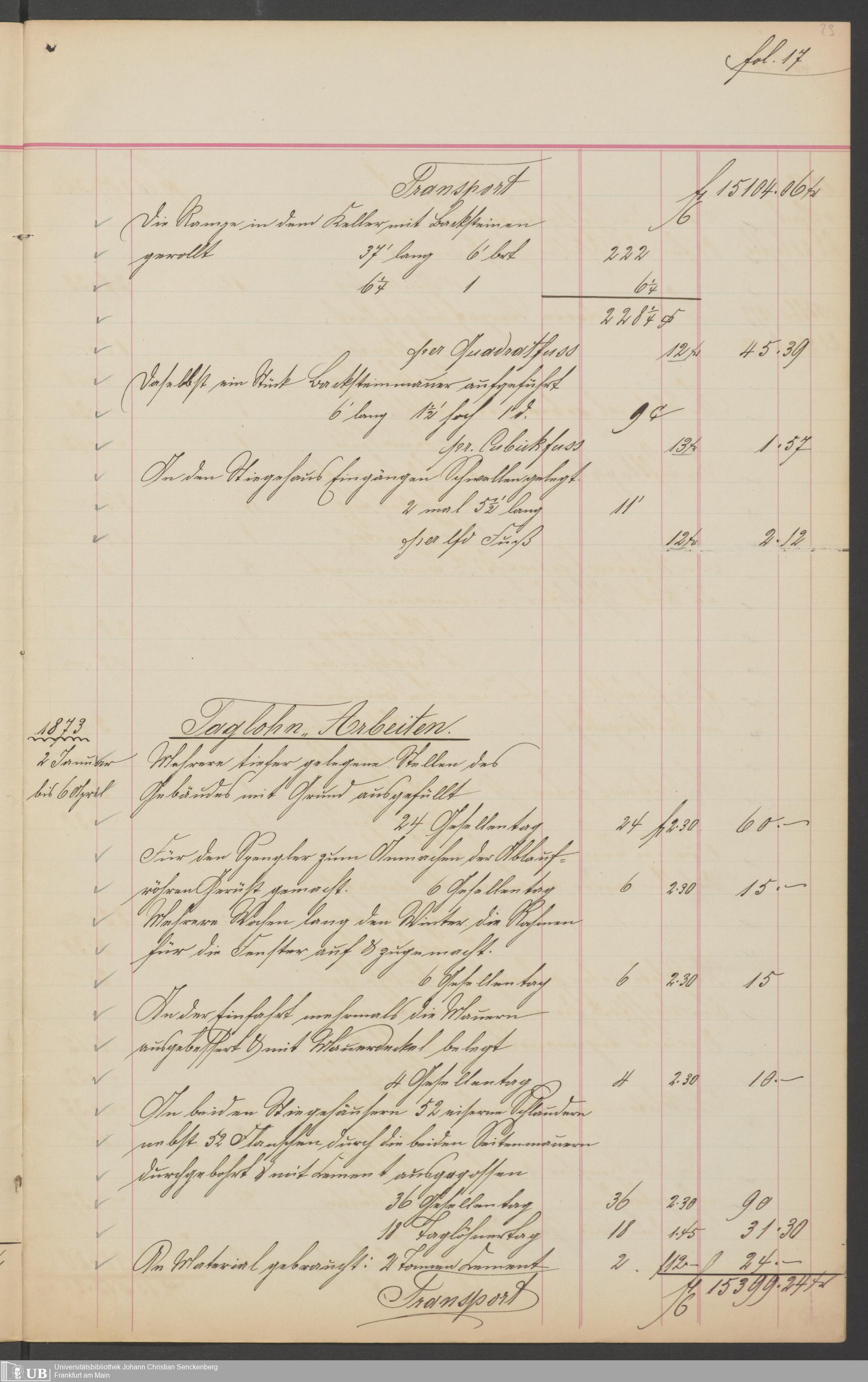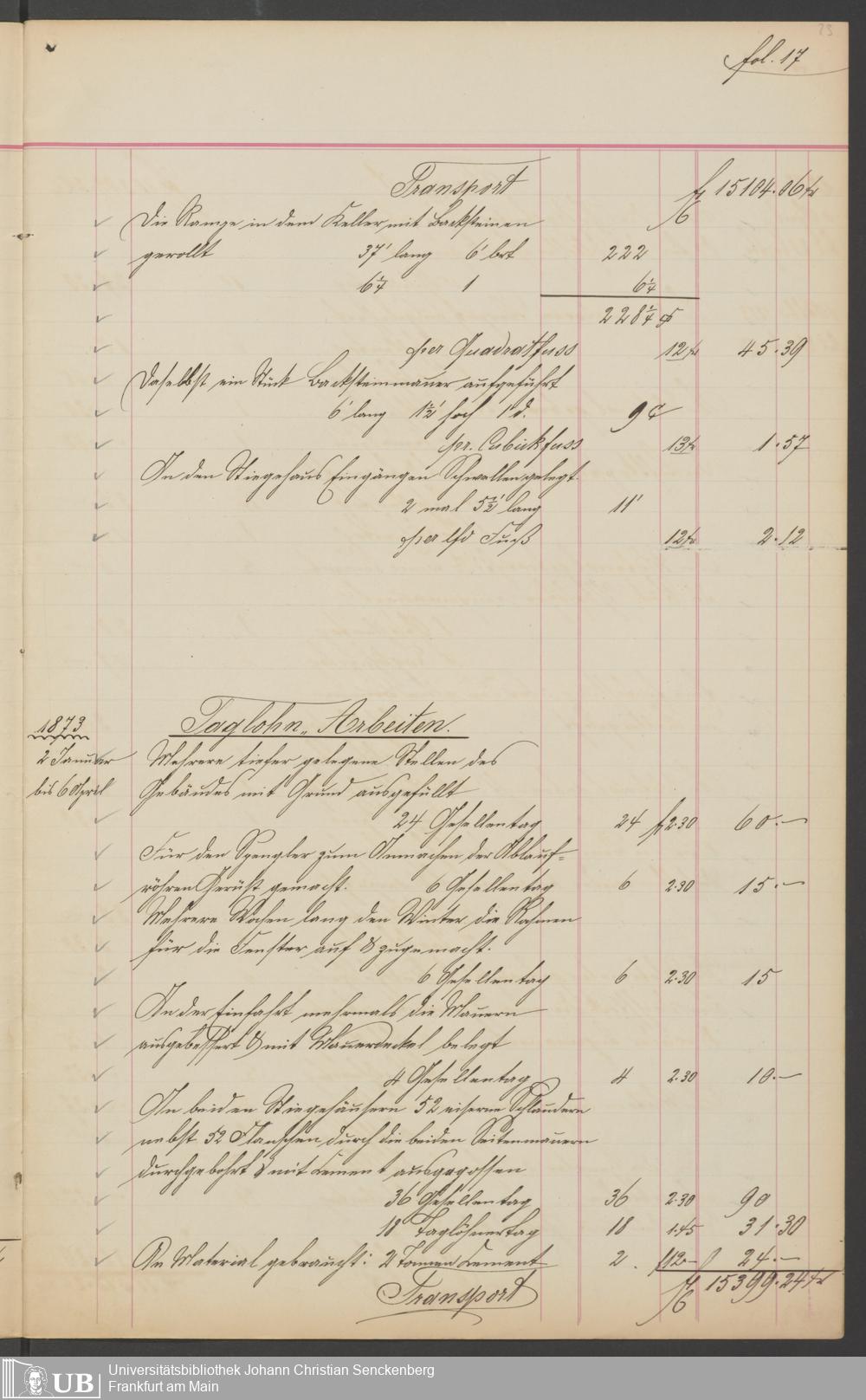 B 5 Dr. Senckenbergische Stiftung, 201 - Rechnungsaufnahme über ausgeführte Arbeiten durch Maurermeister Günther