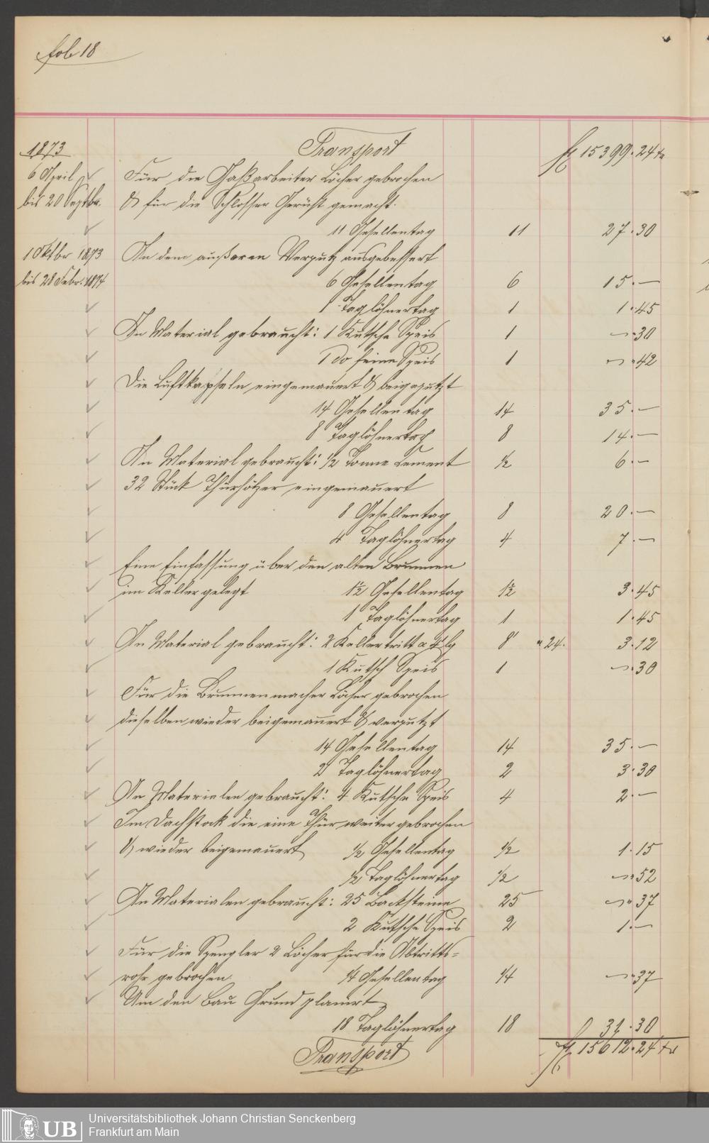 B 5 Dr. Senckenbergische Stiftung, 201 - Rechnungsaufnahme über ausgeführte Arbeiten durch Maurermeister Günther