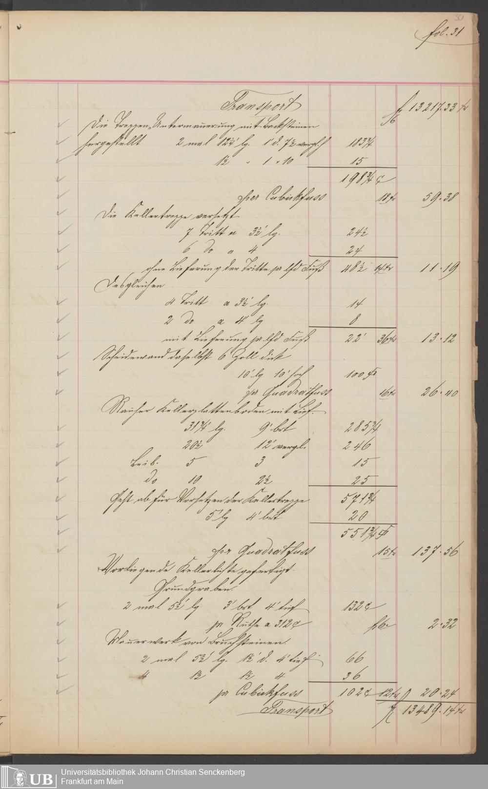 B 5 Dr. Senckenbergische Stiftung, 201 - Rechnungsaufnahme über ausgeführte Arbeiten durch Maurermeister Günther