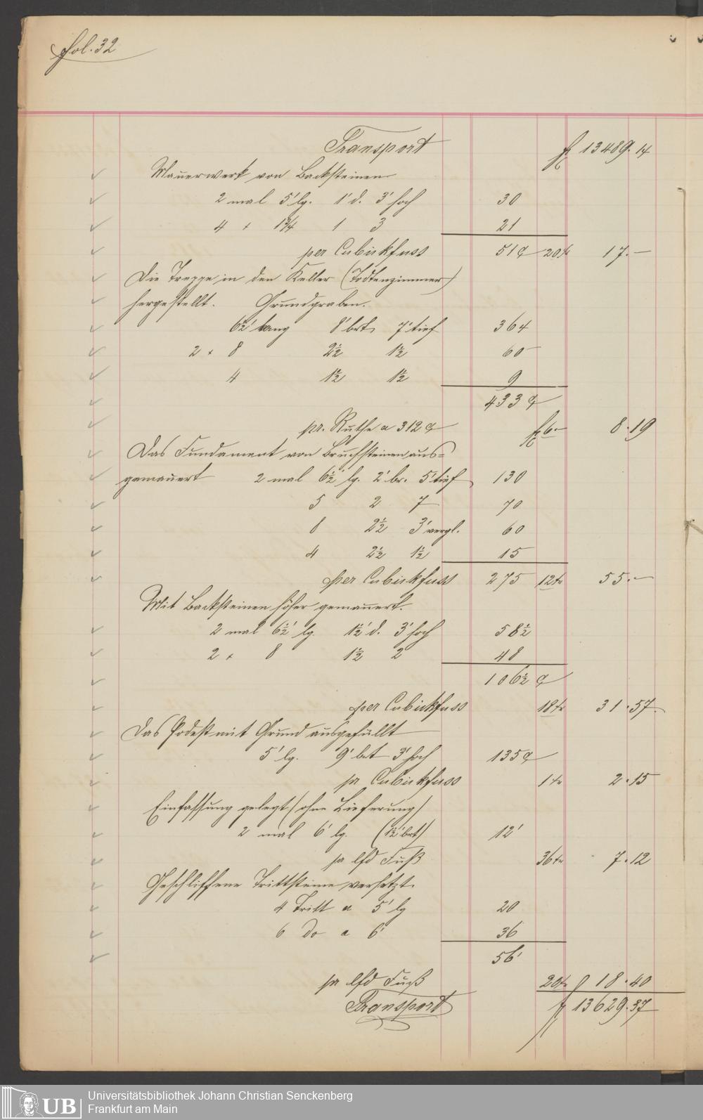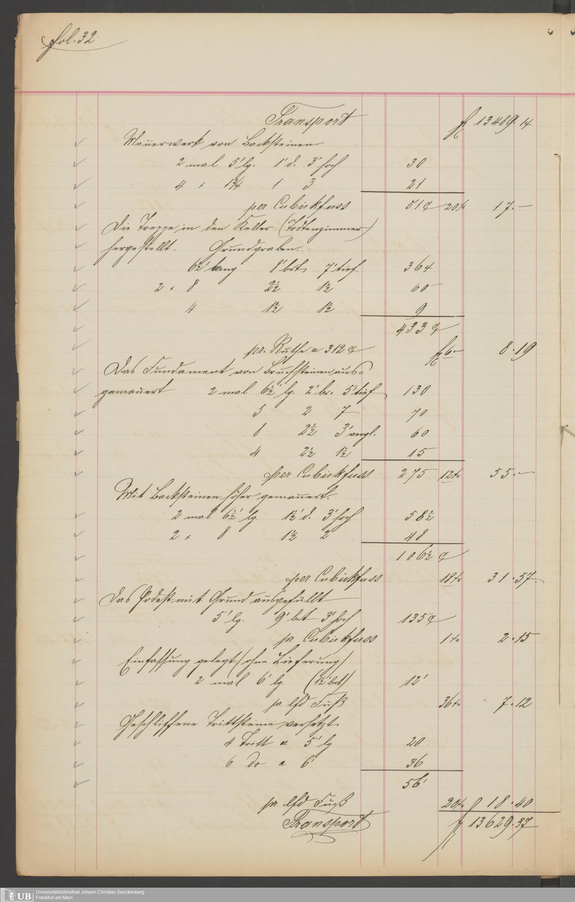 B 5 Dr. Senckenbergische Stiftung, 201 - Rechnungsaufnahme über ausgeführte Arbeiten durch Maurermeister Günther