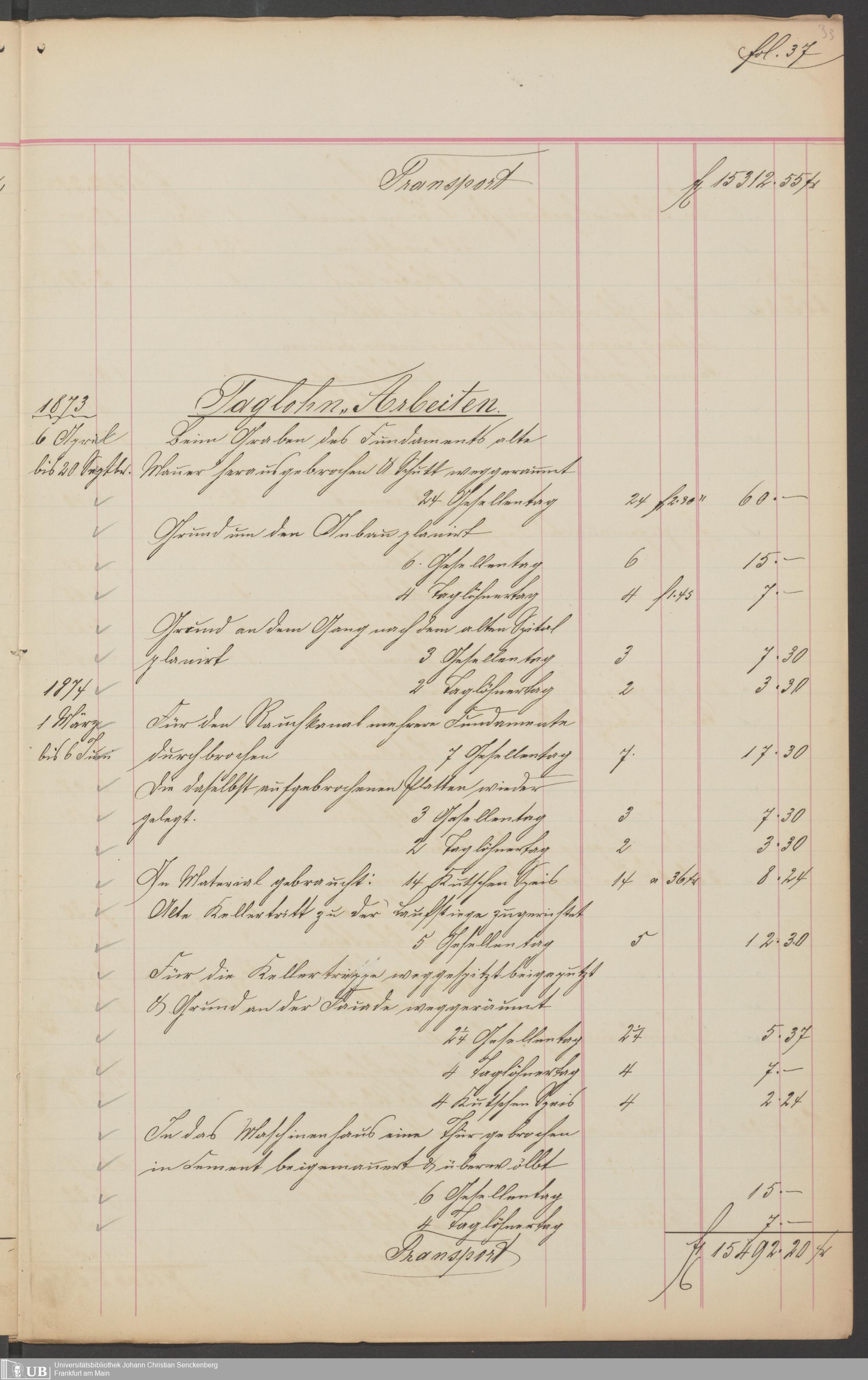 B 5 Dr. Senckenbergische Stiftung, 201 - Rechnungsaufnahme über ausgeführte Arbeiten durch Maurermeister Günther