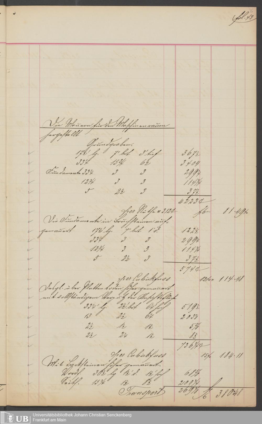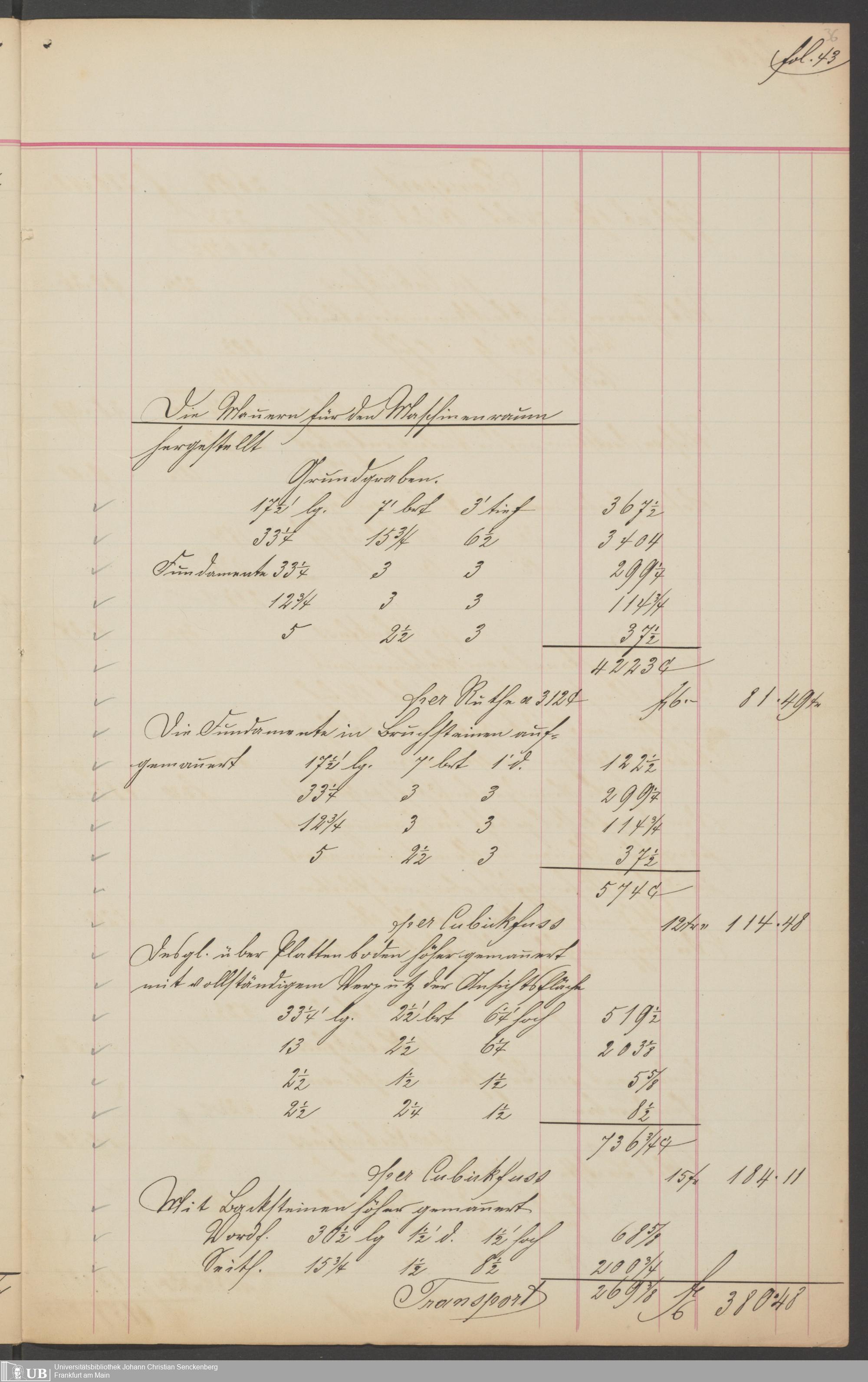 B 5 Dr. Senckenbergische Stiftung, 201 - Rechnungsaufnahme über ausgeführte Arbeiten durch Maurermeister Günther