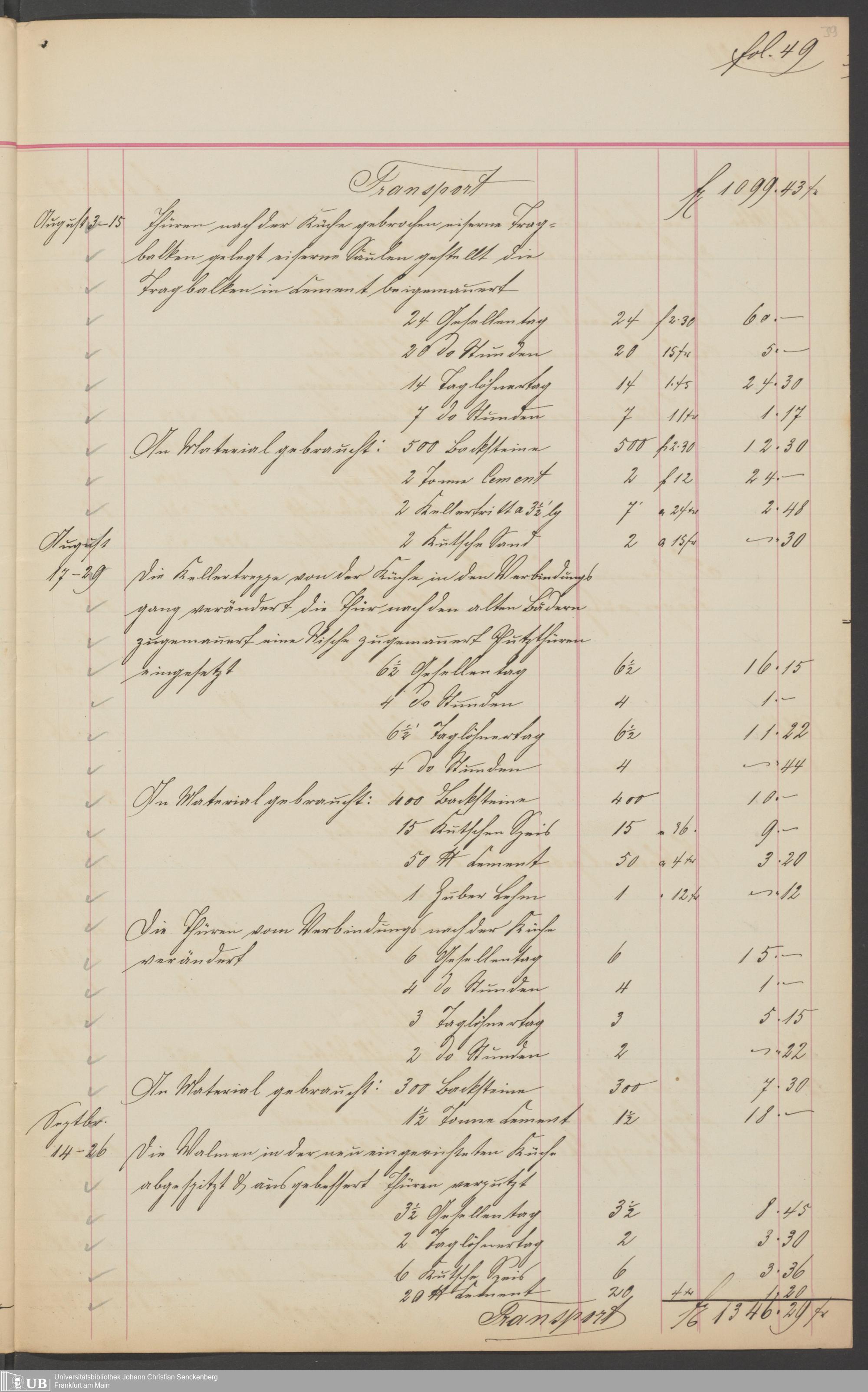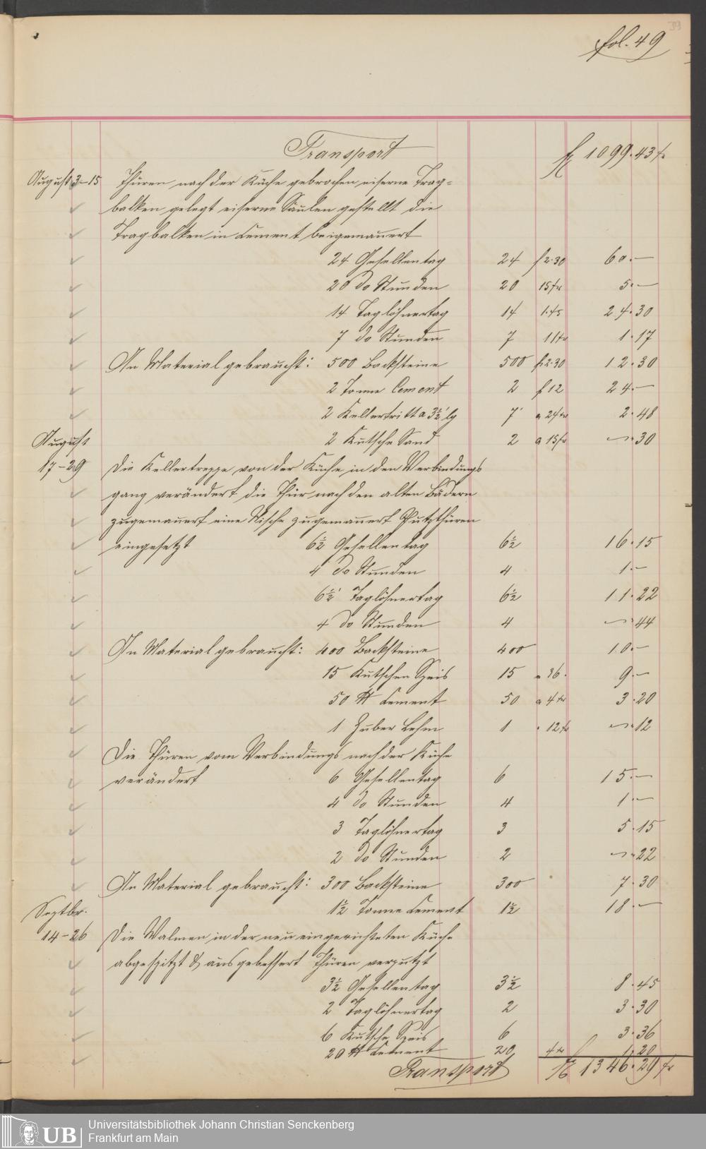 B 5 Dr. Senckenbergische Stiftung, 201 - Rechnungsaufnahme über ausgeführte Arbeiten durch Maurermeister Günther
