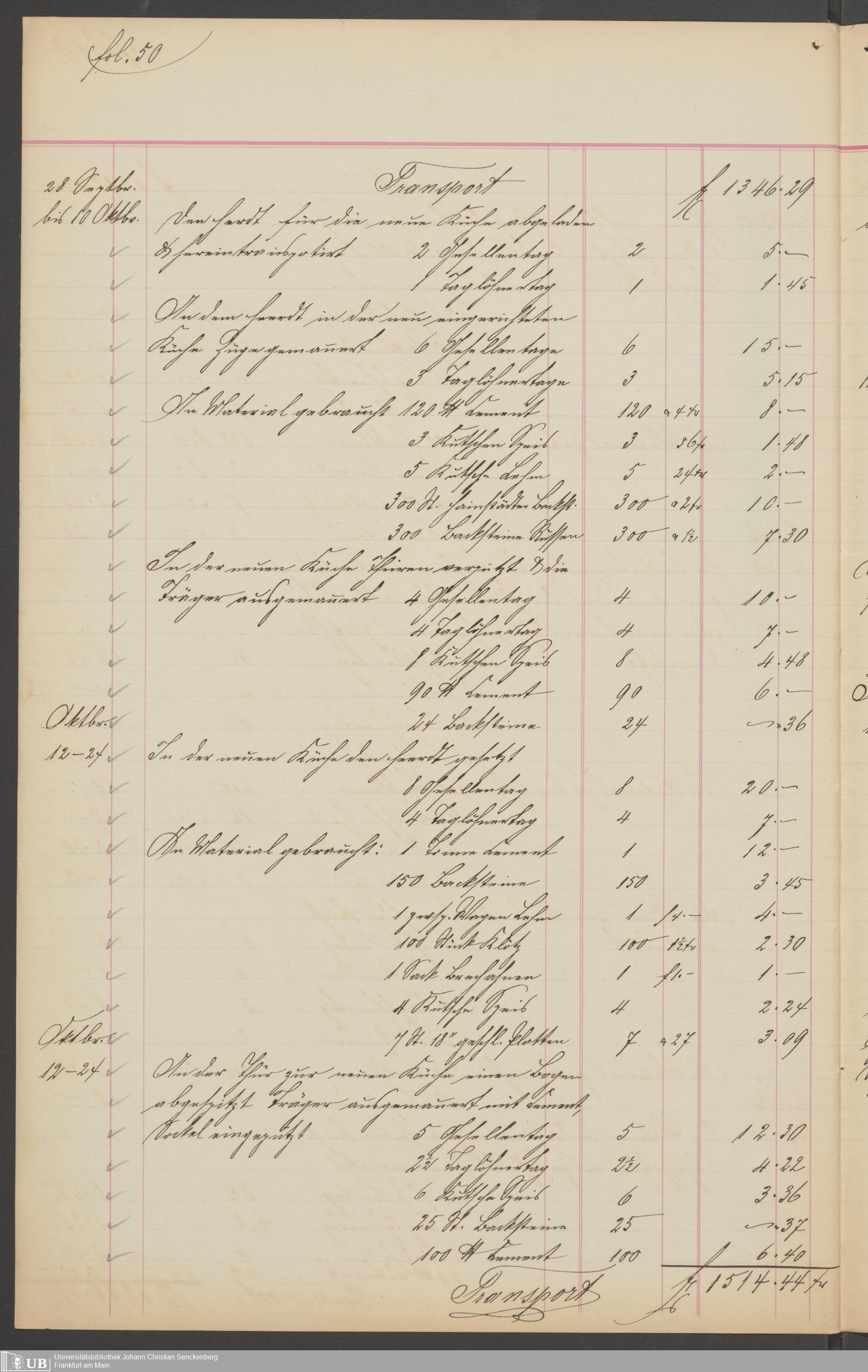 B 5 Dr. Senckenbergische Stiftung, 201 - Rechnungsaufnahme über ausgeführte Arbeiten durch Maurermeister Günther