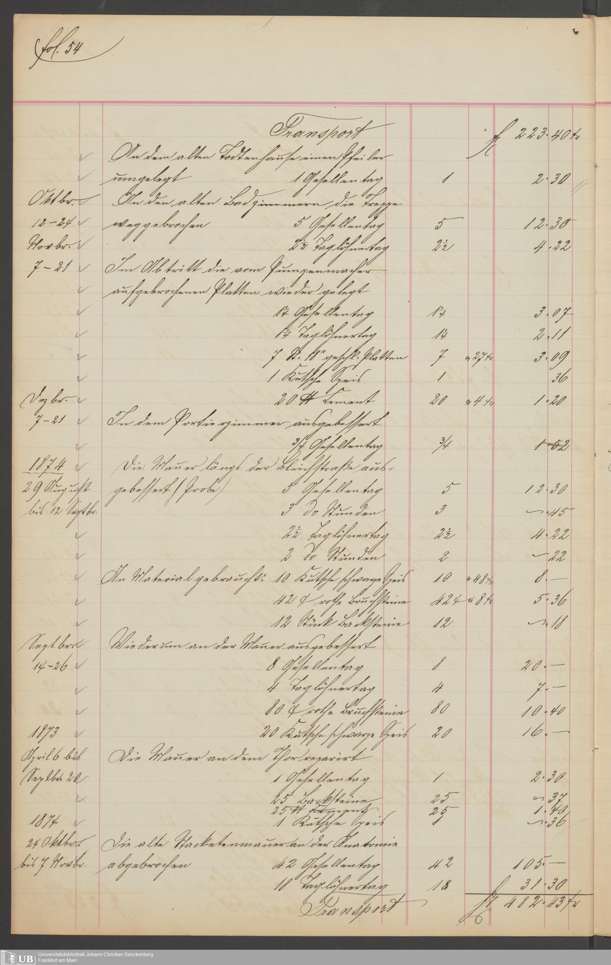 B 5 Dr. Senckenbergische Stiftung, 201 - Rechnungsaufnahme über ausgeführte Arbeiten durch Maurermeister Günther
