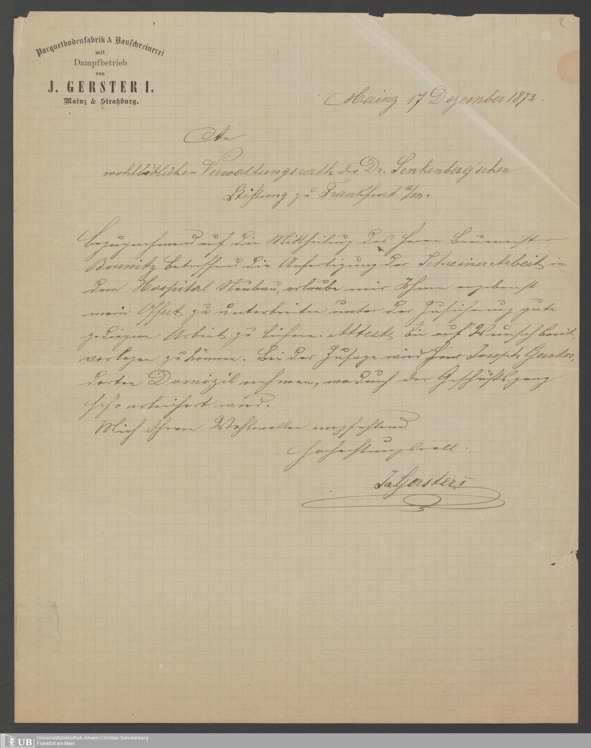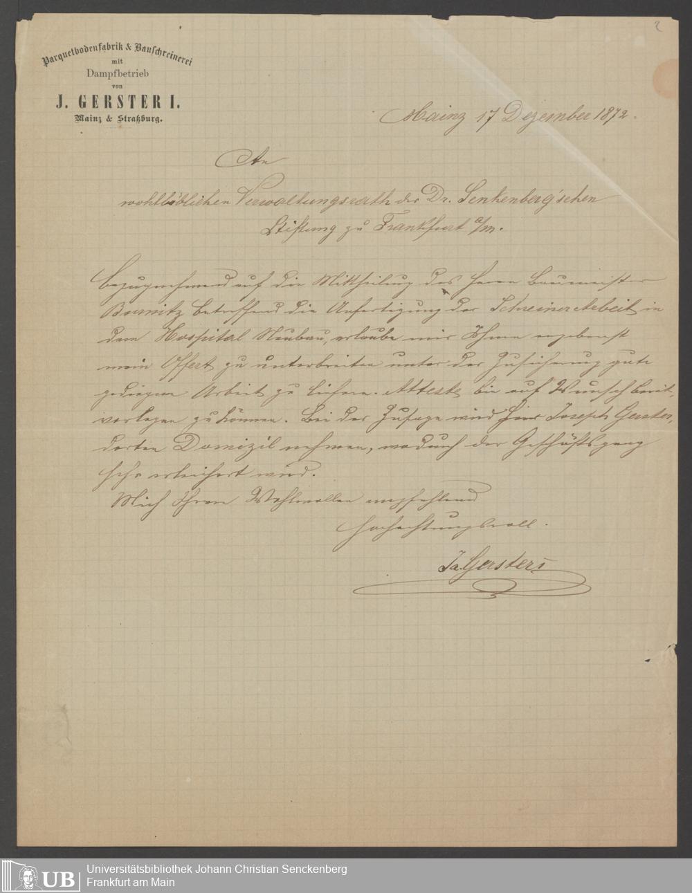 B 5 Dr. Senckenbergische Stiftung, 202 - Rechnungen und Briefe der Handwerker
