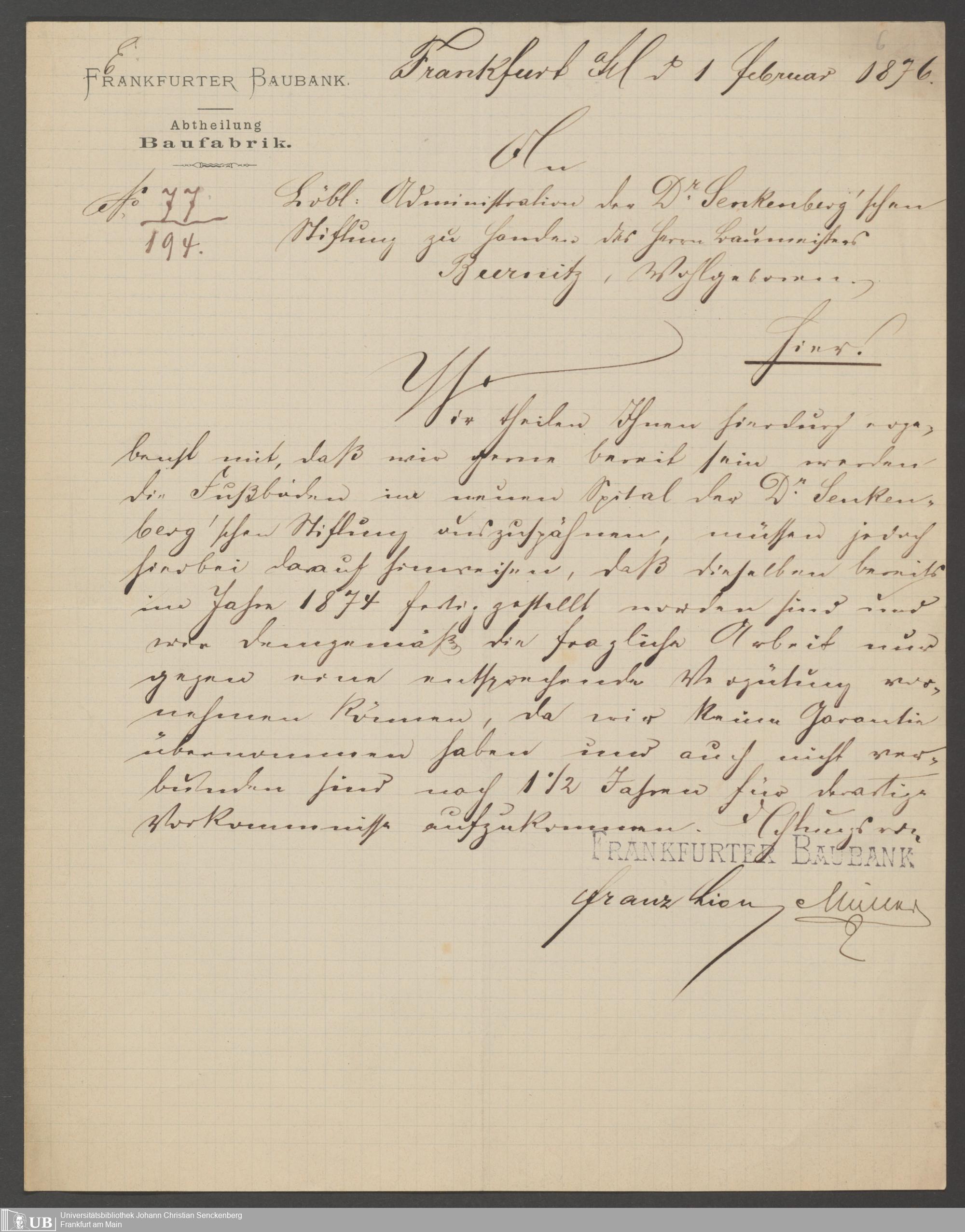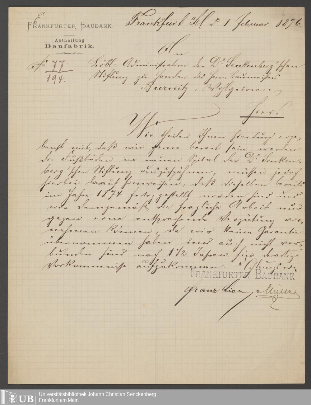 B 5 Dr. Senckenbergische Stiftung, 202 - Rechnungen und Briefe der Handwerker