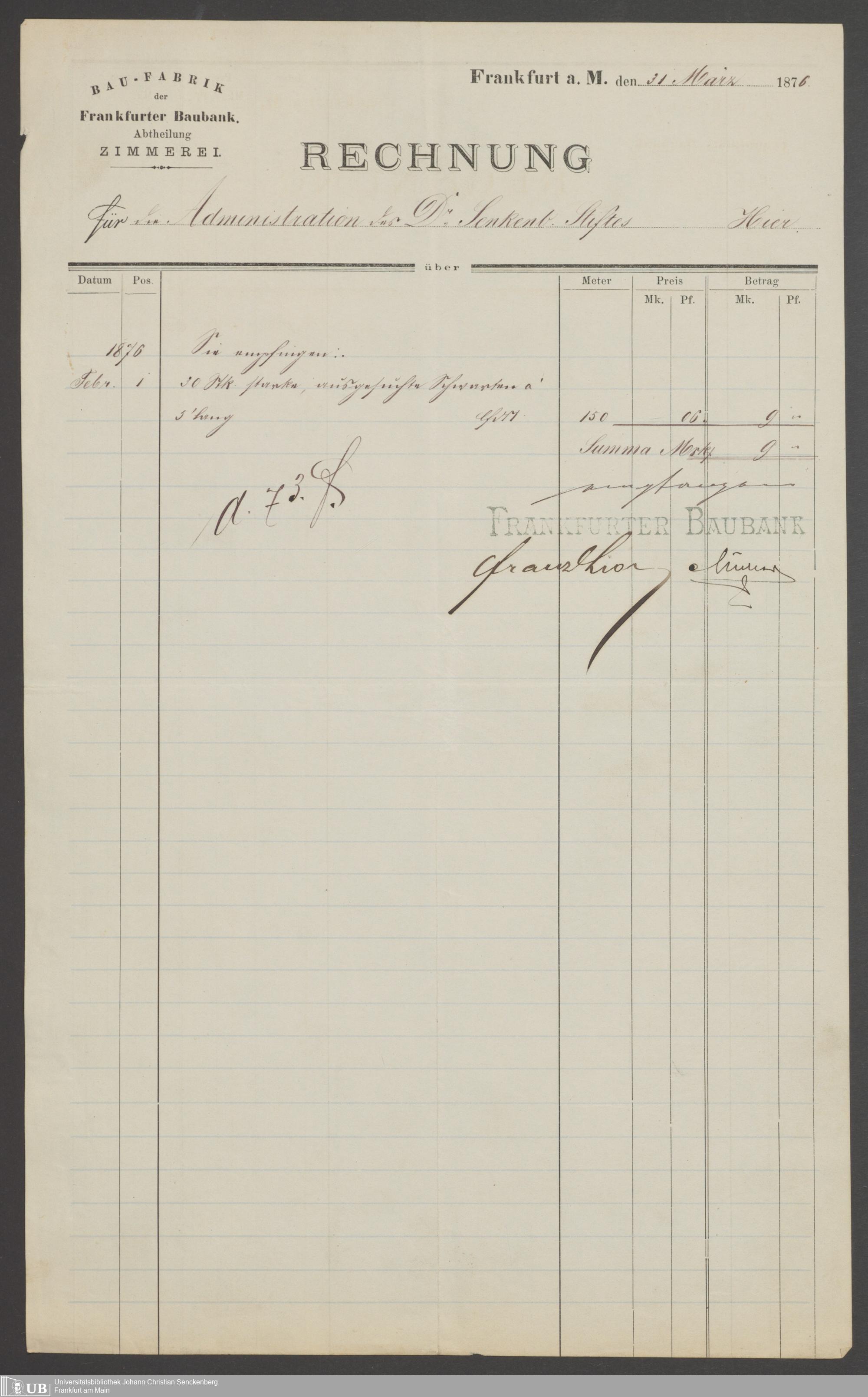 B 5 Dr. Senckenbergische Stiftung, 202 - Rechnungen und Briefe der Handwerker