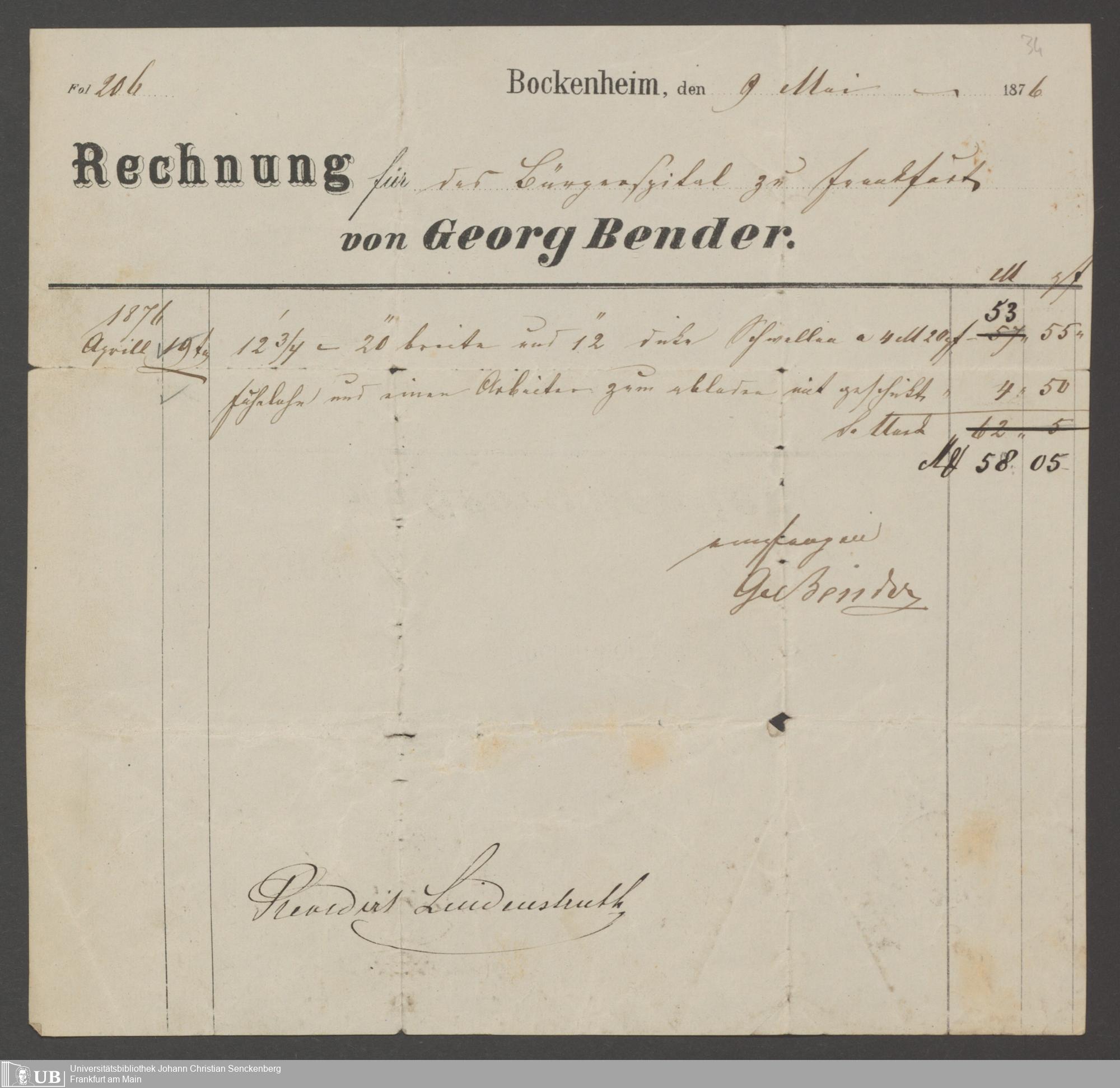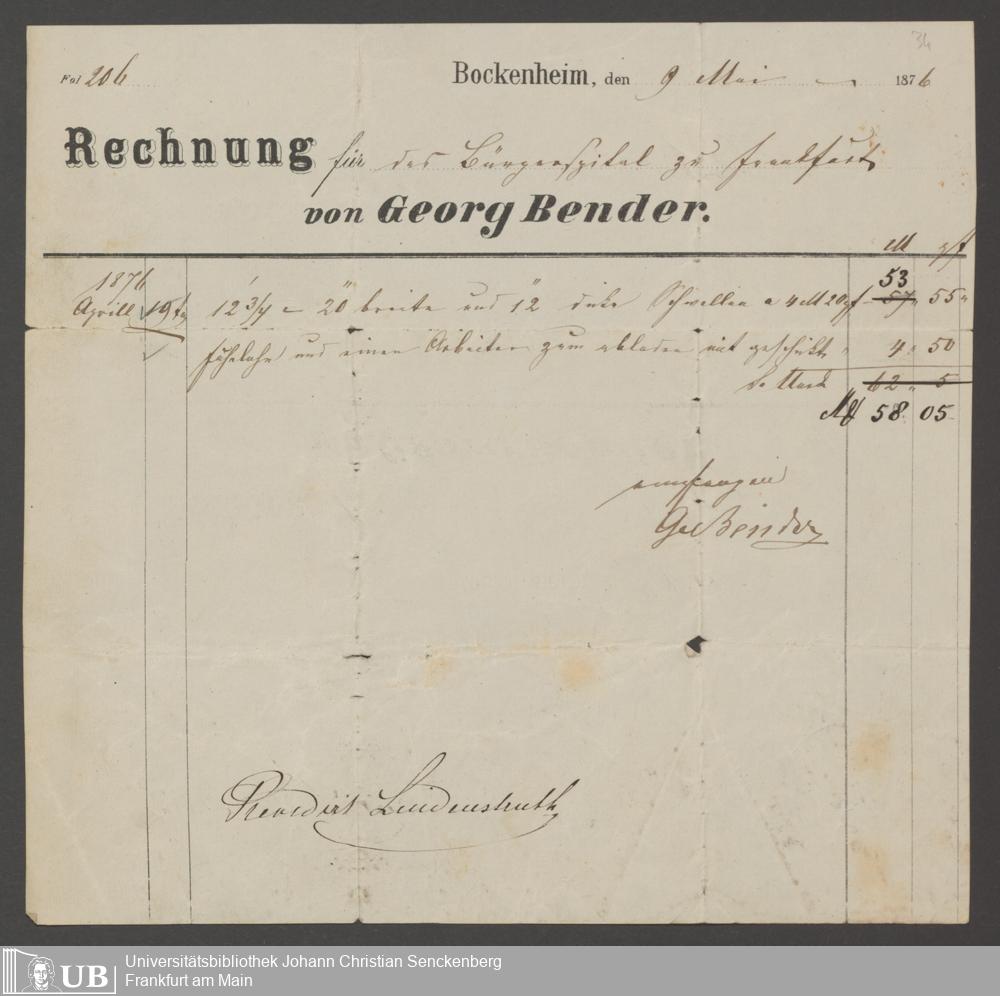 B 5 Dr. Senckenbergische Stiftung, 202 - Rechnungen und Briefe der Handwerker