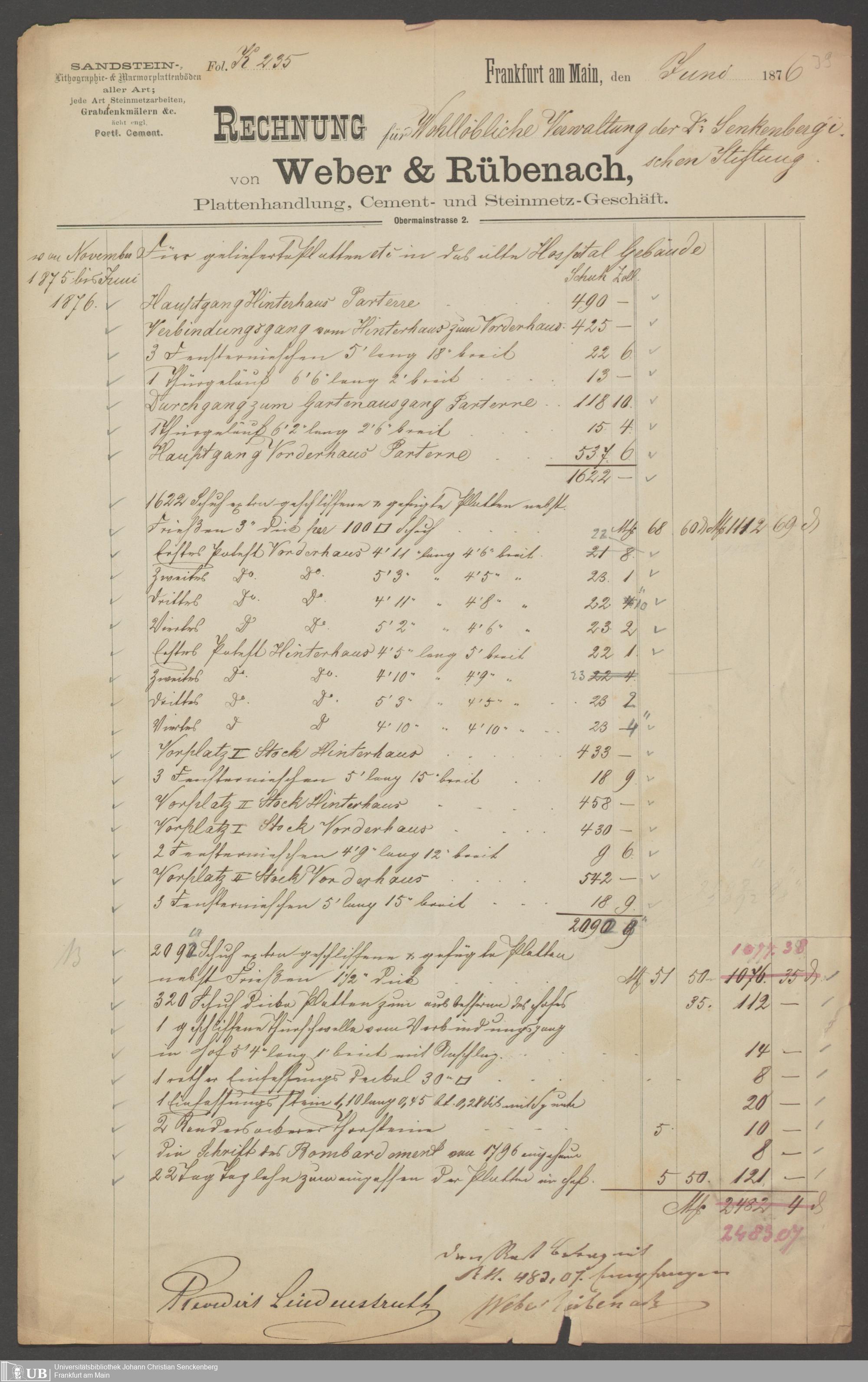 B 5 Dr. Senckenbergische Stiftung, 202 - Rechnungen und Briefe der Handwerker