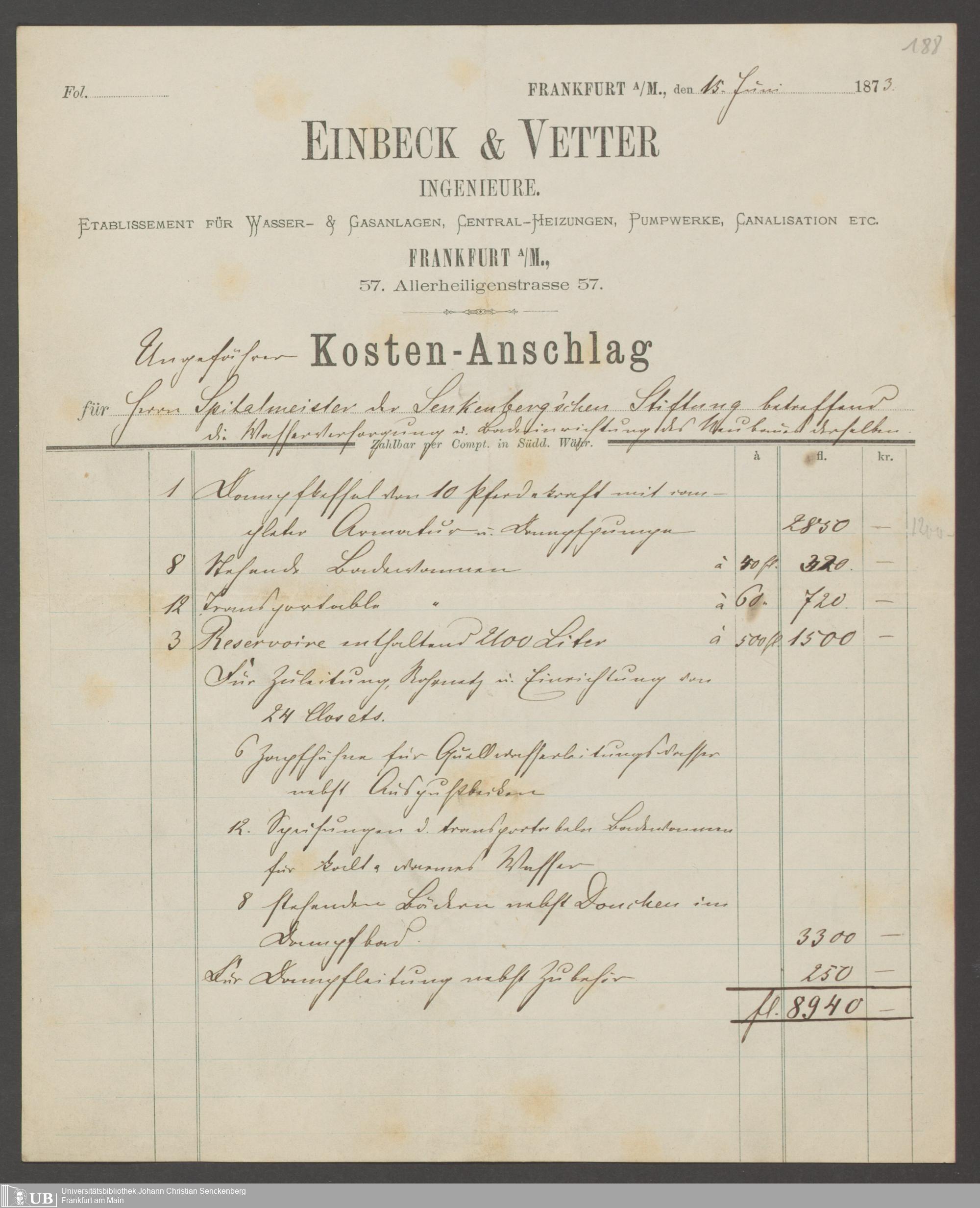 B 5 Dr. Senckenbergische Stiftung, 202 - Rechnungen und Briefe der Handwerker