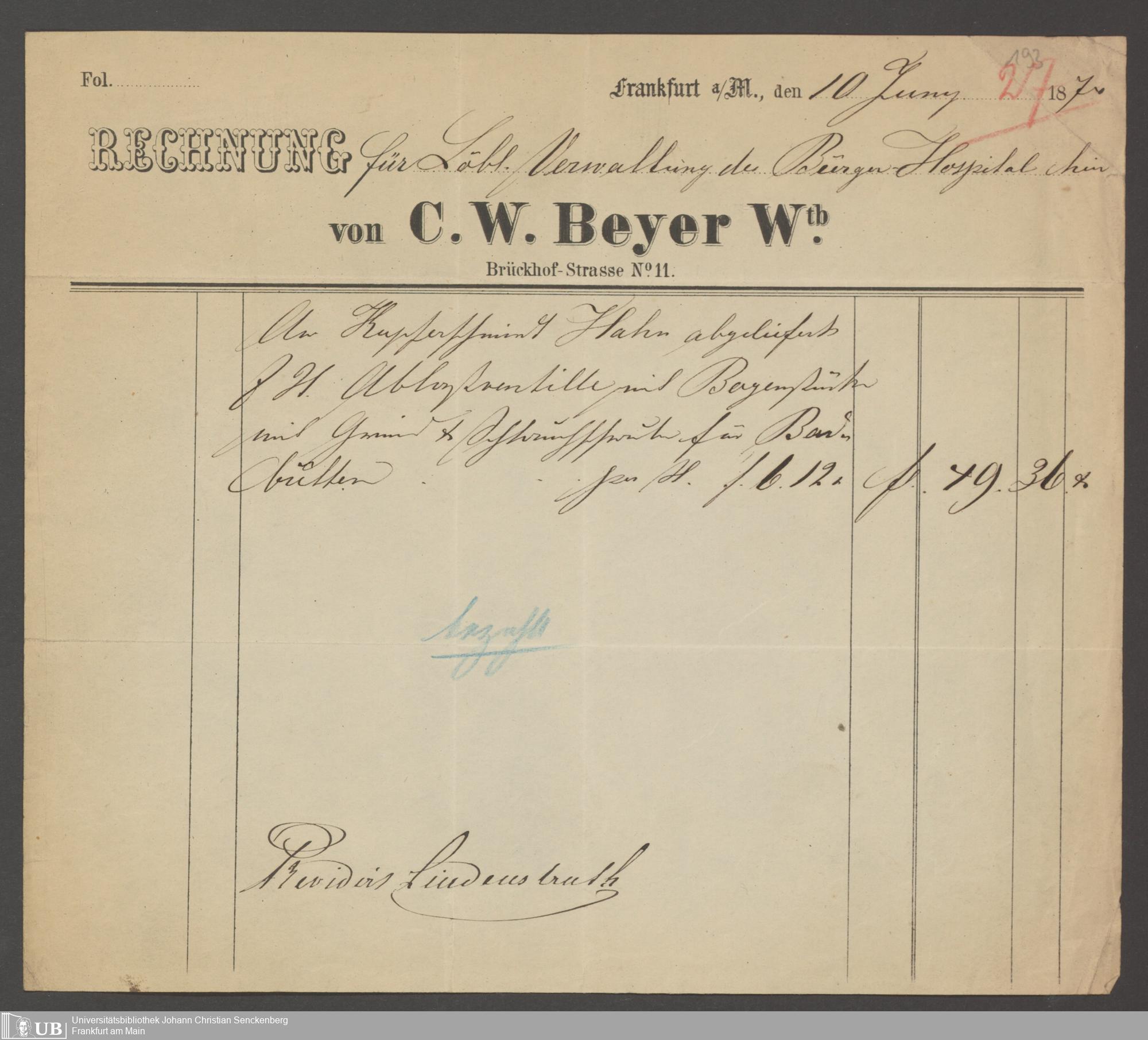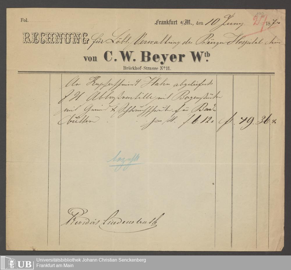 B 5 Dr. Senckenbergische Stiftung, 202 - Rechnungen und Briefe der Handwerker