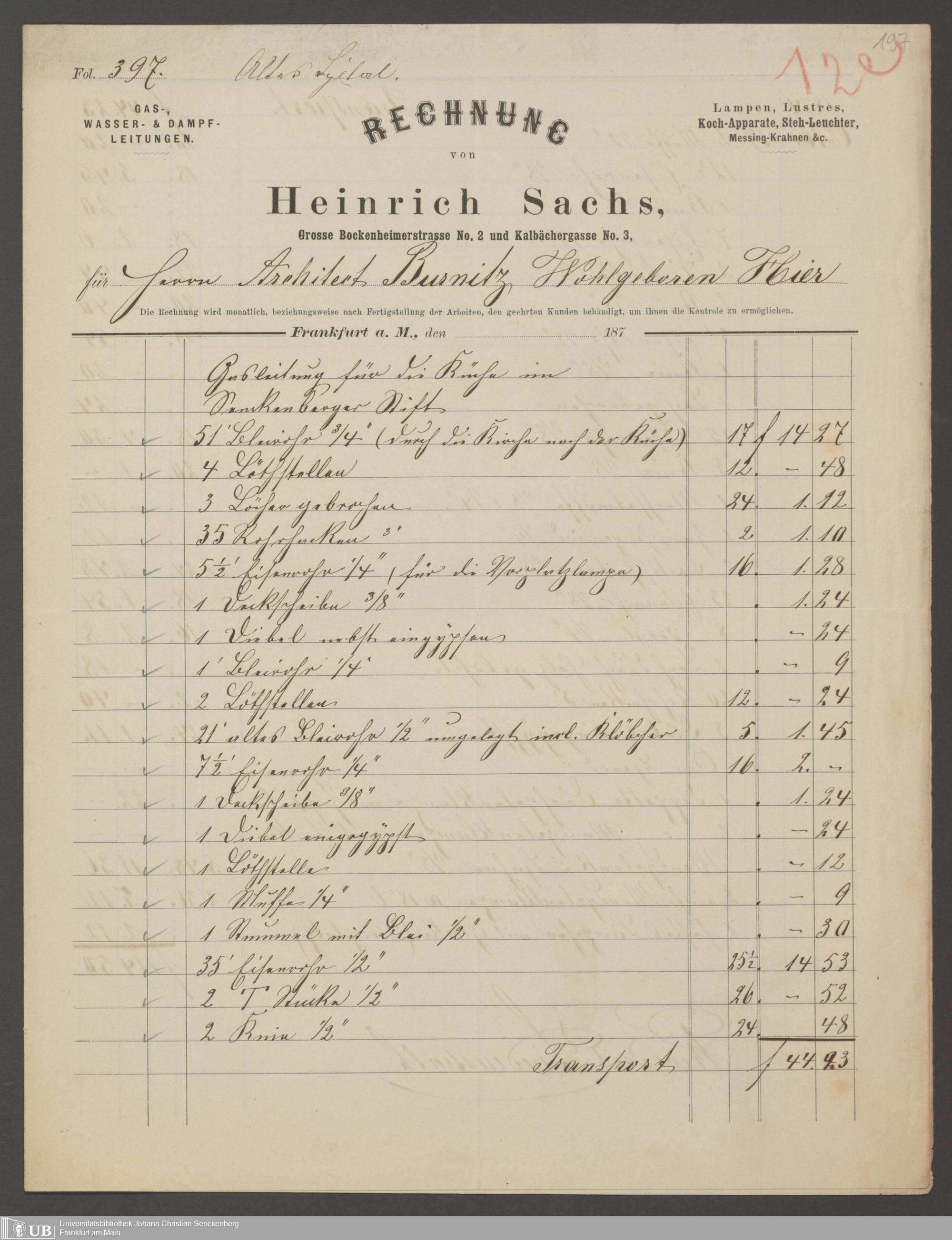B 5 Dr. Senckenbergische Stiftung, 202 - Rechnungen und Briefe der Handwerker