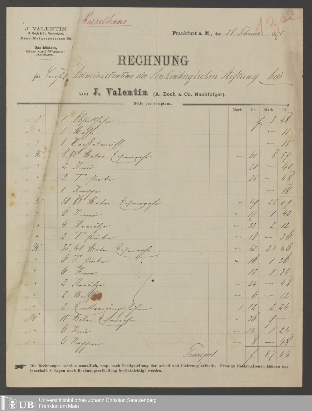 B 5 Dr. Senckenbergische Stiftung, 202 - Rechnungen und Briefe der Handwerker