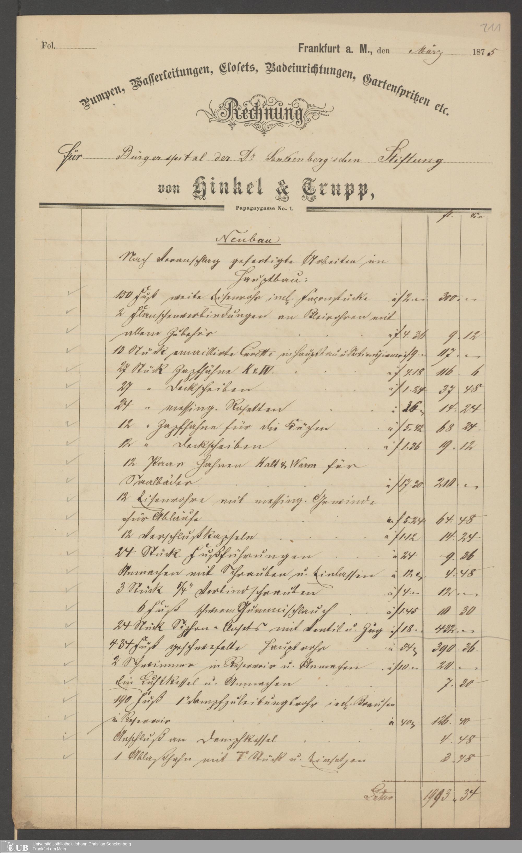 B 5 Dr. Senckenbergische Stiftung, 202 - Rechnungen und Briefe der Handwerker