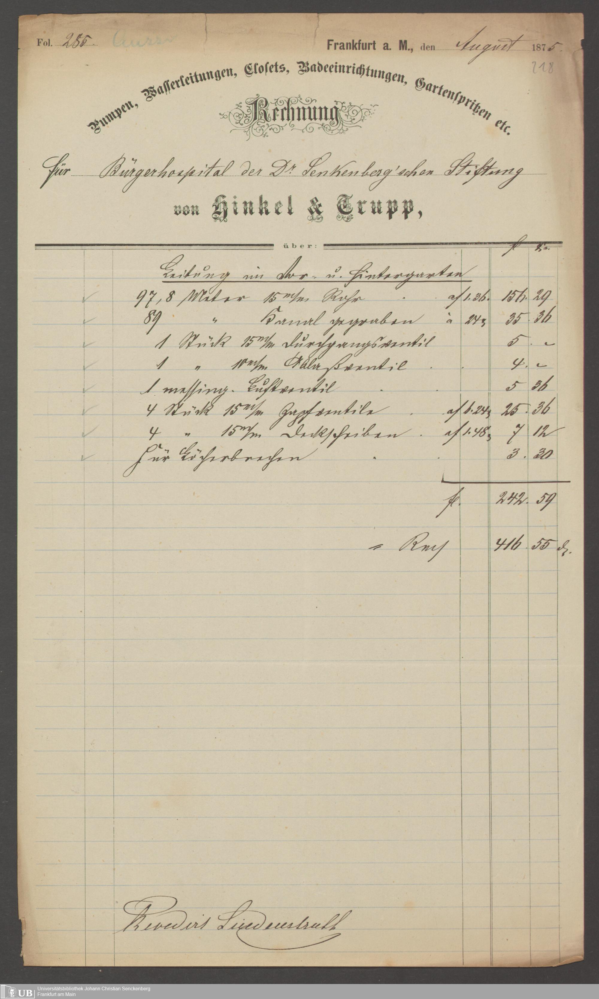 B 5 Dr. Senckenbergische Stiftung, 202 - Rechnungen und Briefe der Handwerker