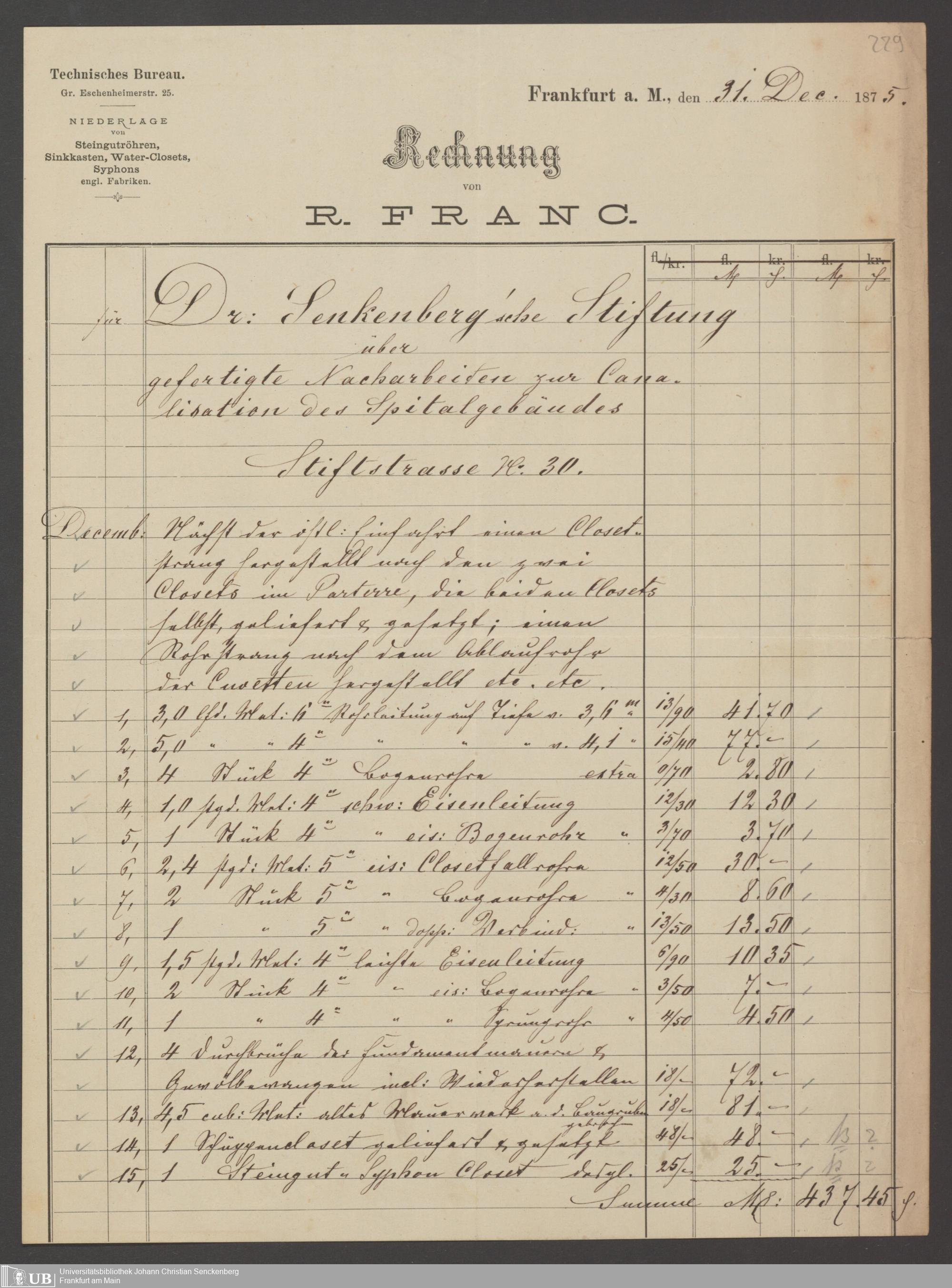 B 5 Dr. Senckenbergische Stiftung, 202 - Rechnungen und Briefe der Handwerker