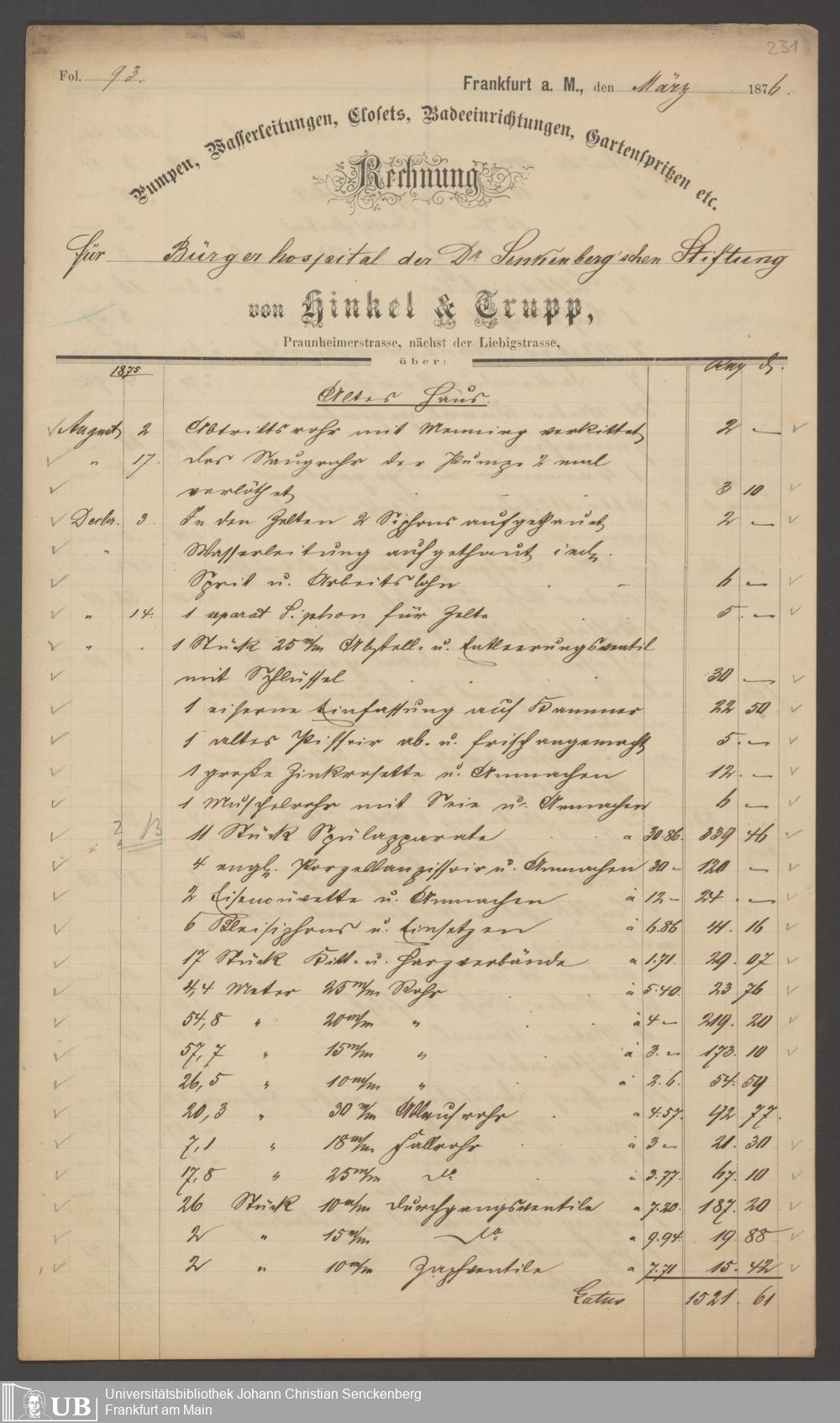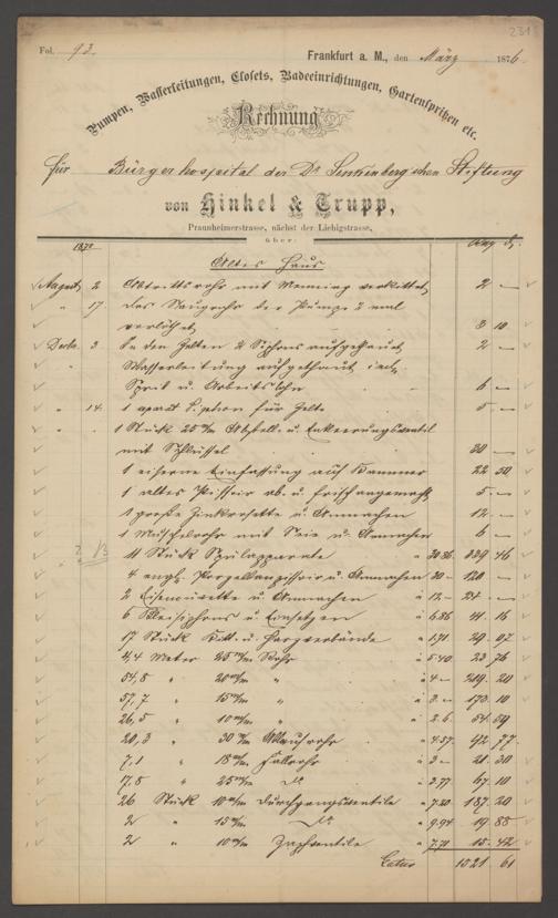 B 5 Dr. Senckenbergische Stiftung, 202 - Rechnungen und Briefe der Handwerker