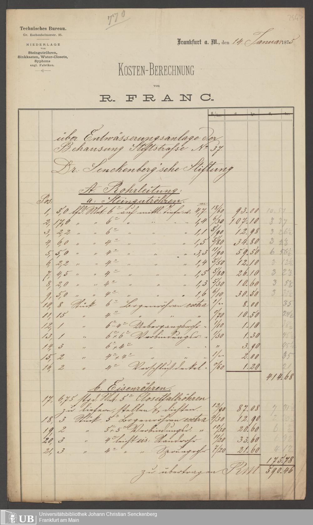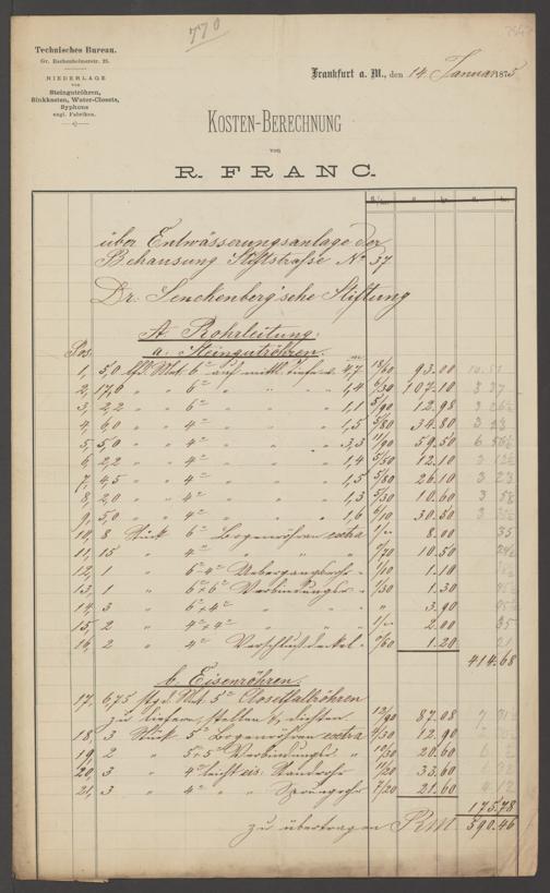 B 5 Dr. Senckenbergische Stiftung, 202 - Rechnungen und Briefe der Handwerker