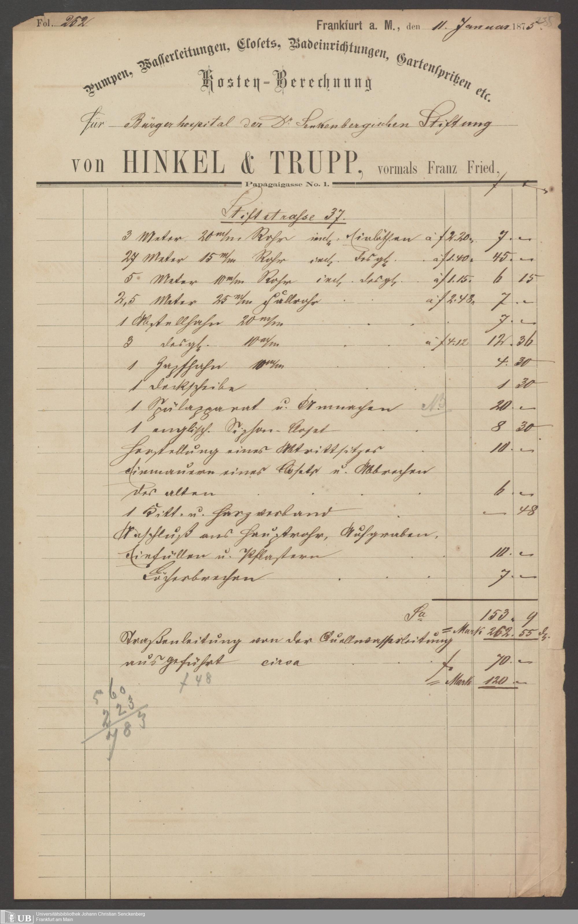 B 5 Dr. Senckenbergische Stiftung, 202 - Rechnungen und Briefe der Handwerker