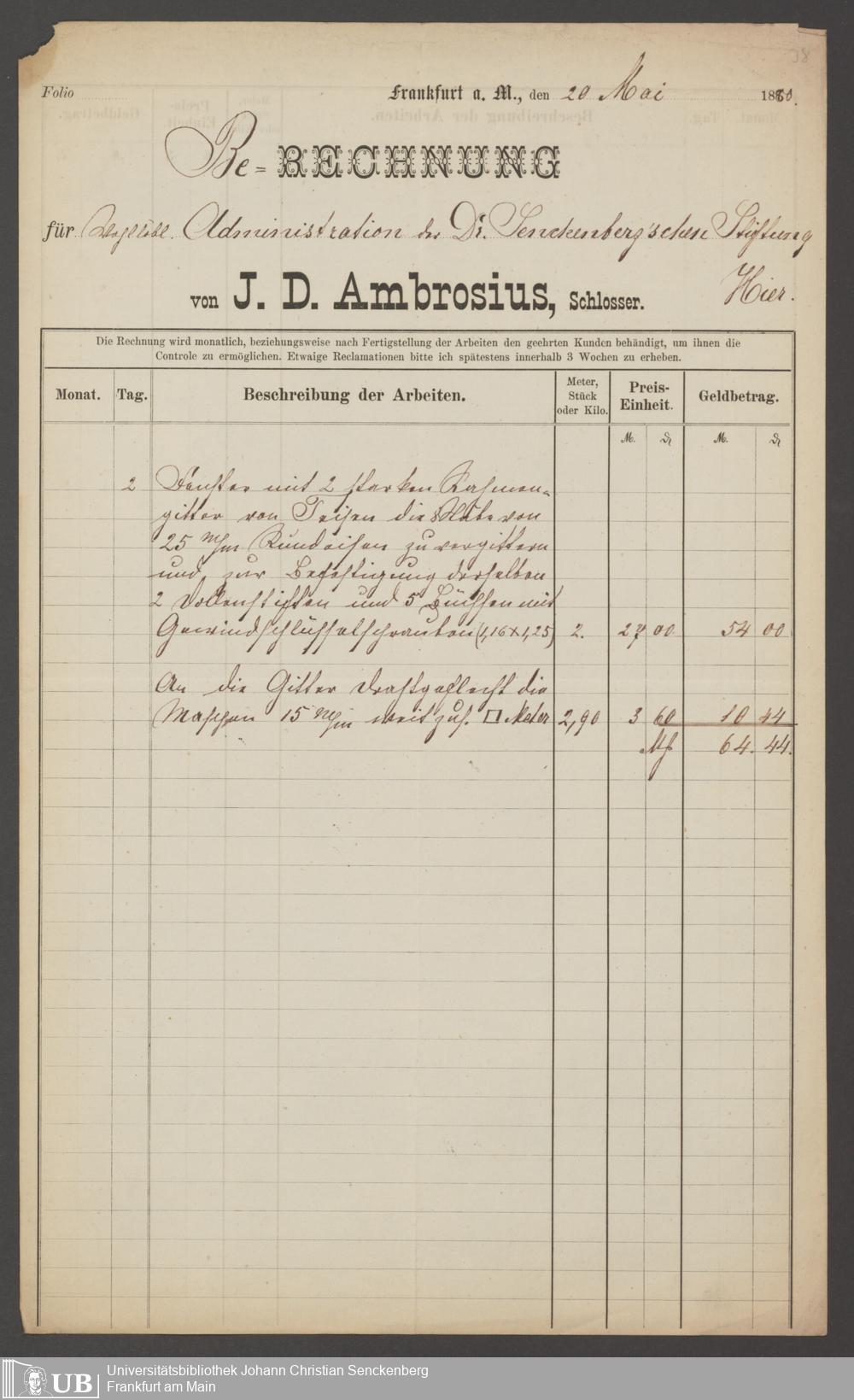B 5 Dr. Senckenbergische Stiftung, 203 - Bauliche Reparaturen