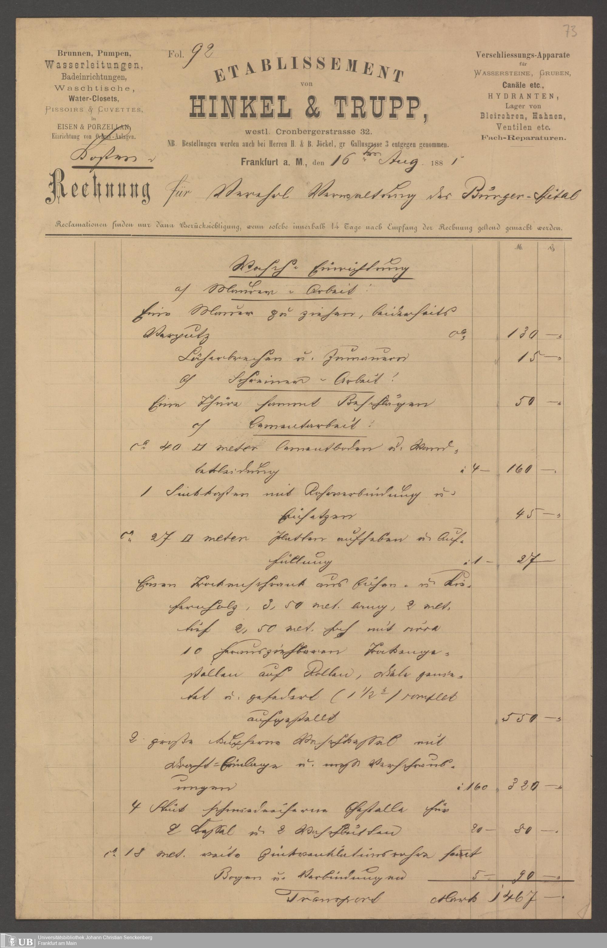 B 5 Dr. Senckenbergische Stiftung, 203 - Bauliche Reparaturen