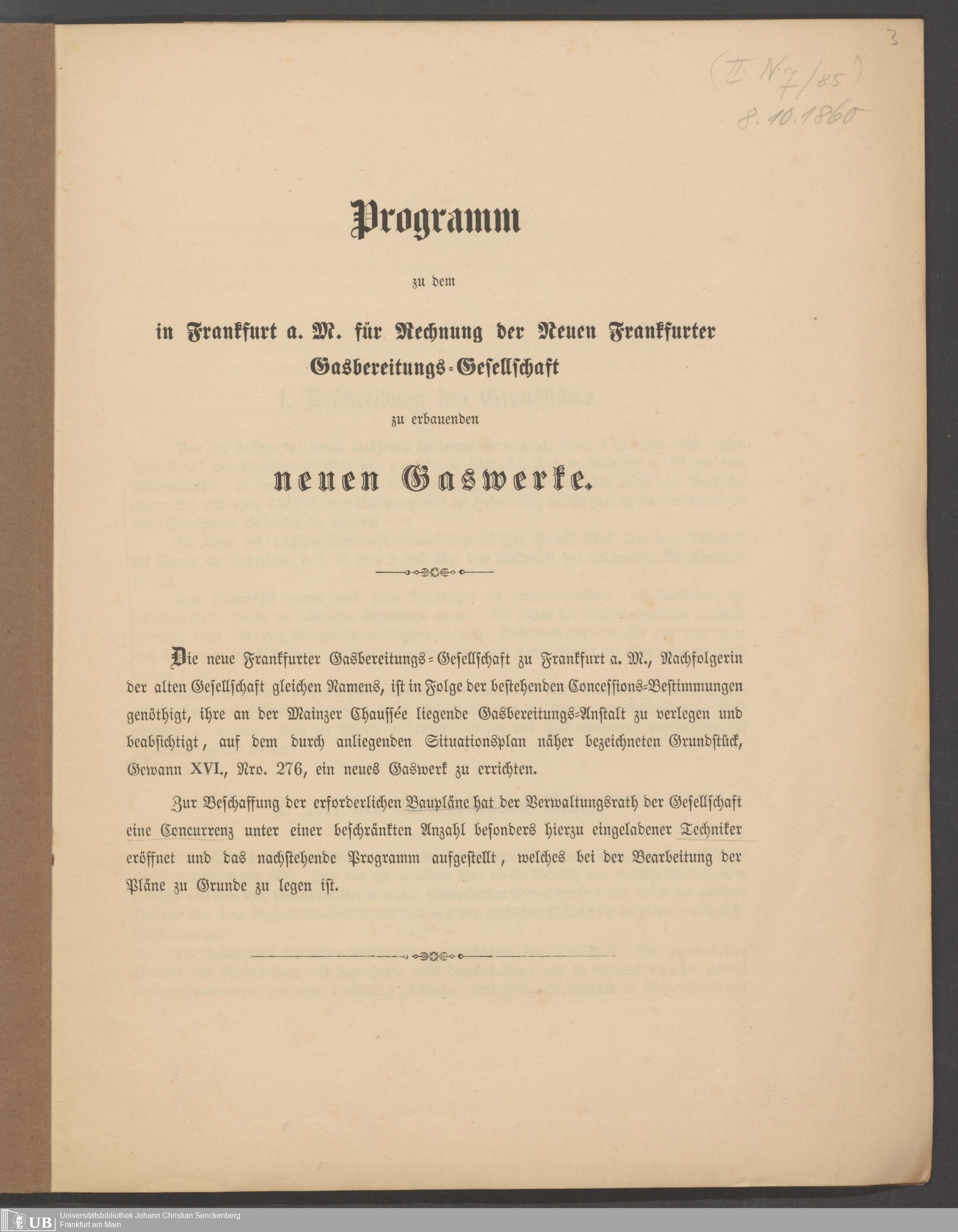 B 5 Dr. Senckenbergische Stiftung, 209 - Telefon- und Elektrizitätsversorgung des Bürgerhospitals