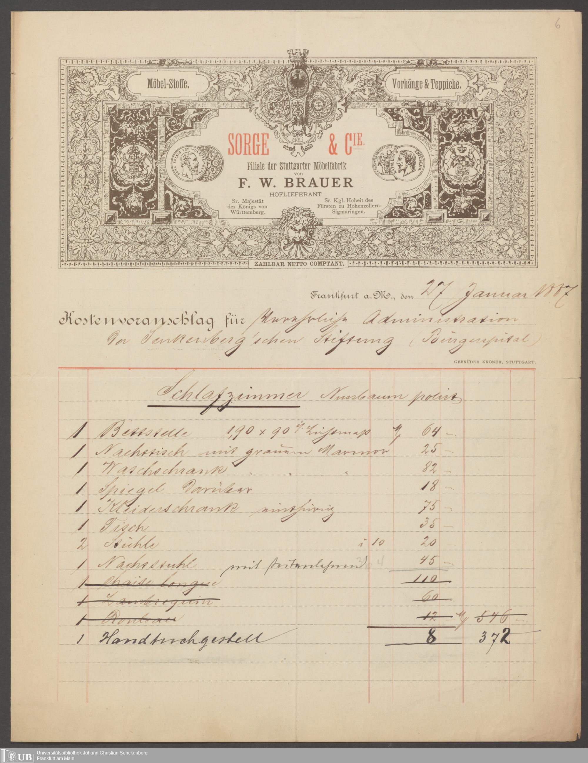 B 5 Dr. Senckenbergische Stiftung, 210 - Wäsche und Geschirrinventare des Krankenhauses und der Pfründner