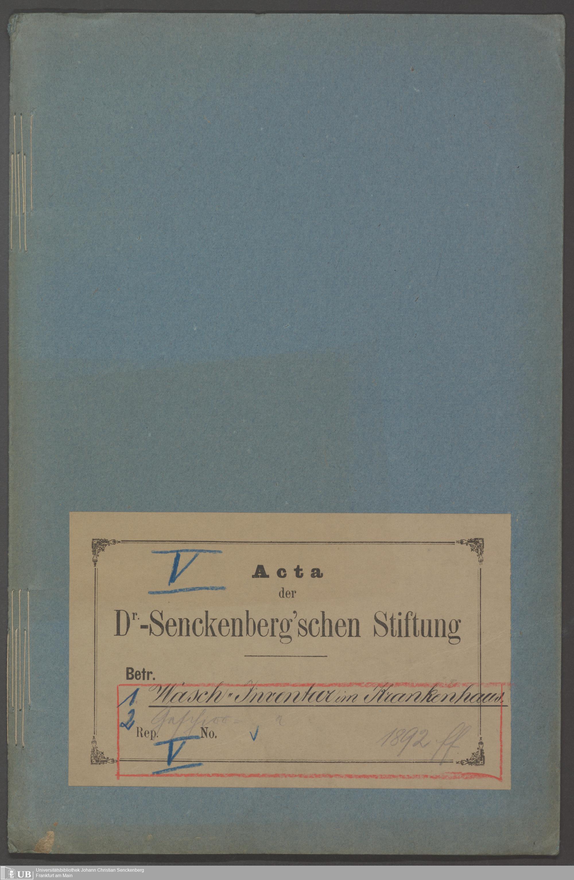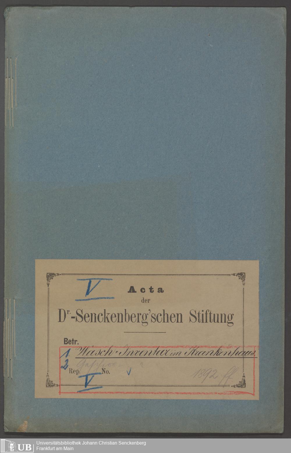 B 5 Dr. Senckenbergische Stiftung, 210 - Wäsche und Geschirrinventare des Krankenhauses und der Pfründner