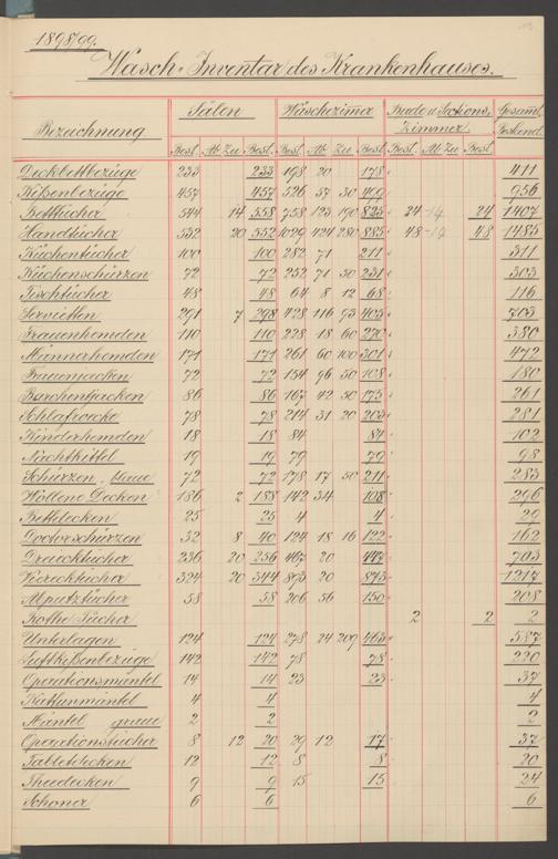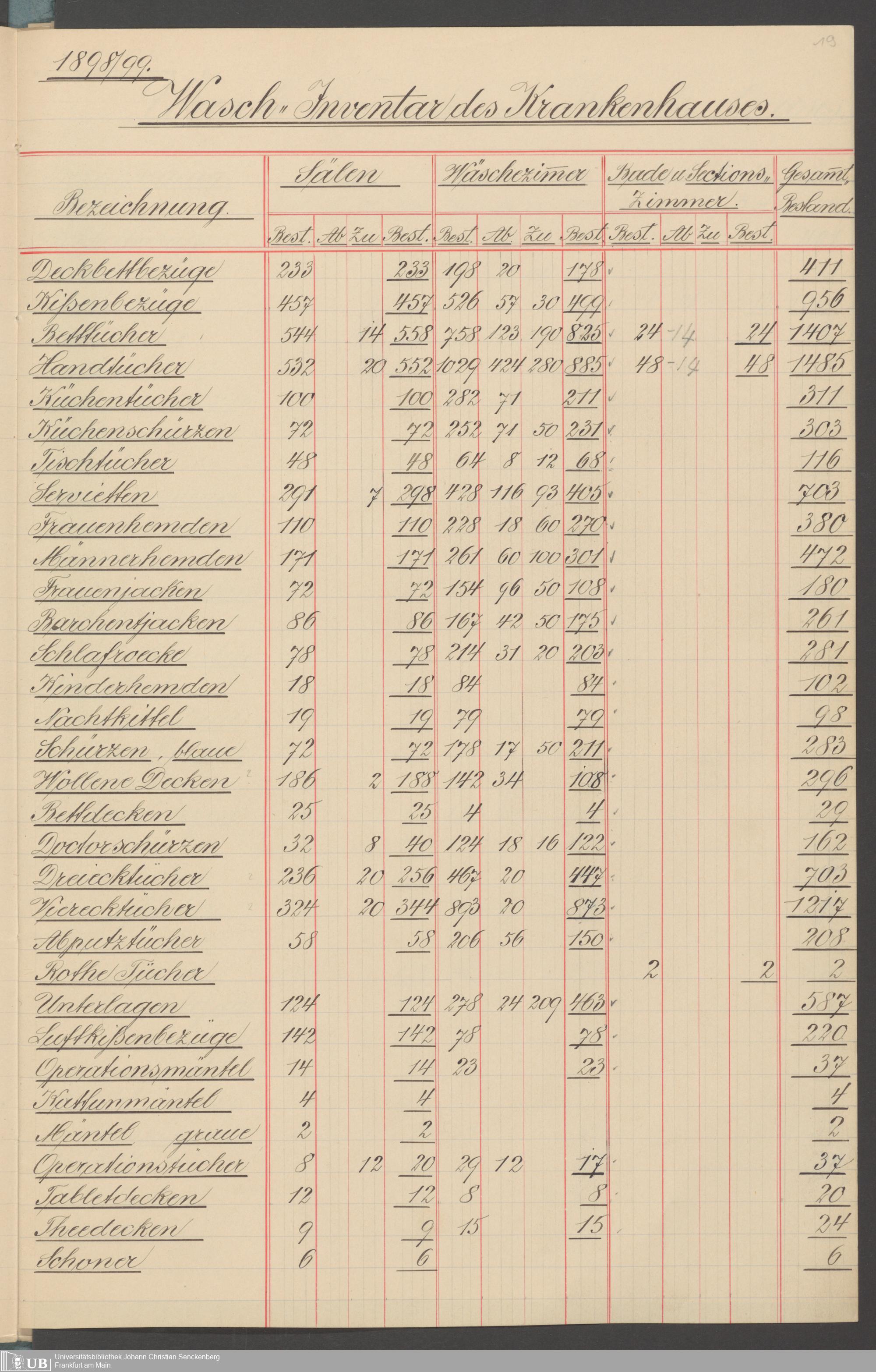 B 5 Dr. Senckenbergische Stiftung, 210 - Wäsche und Geschirrinventare des Krankenhauses und der Pfründner