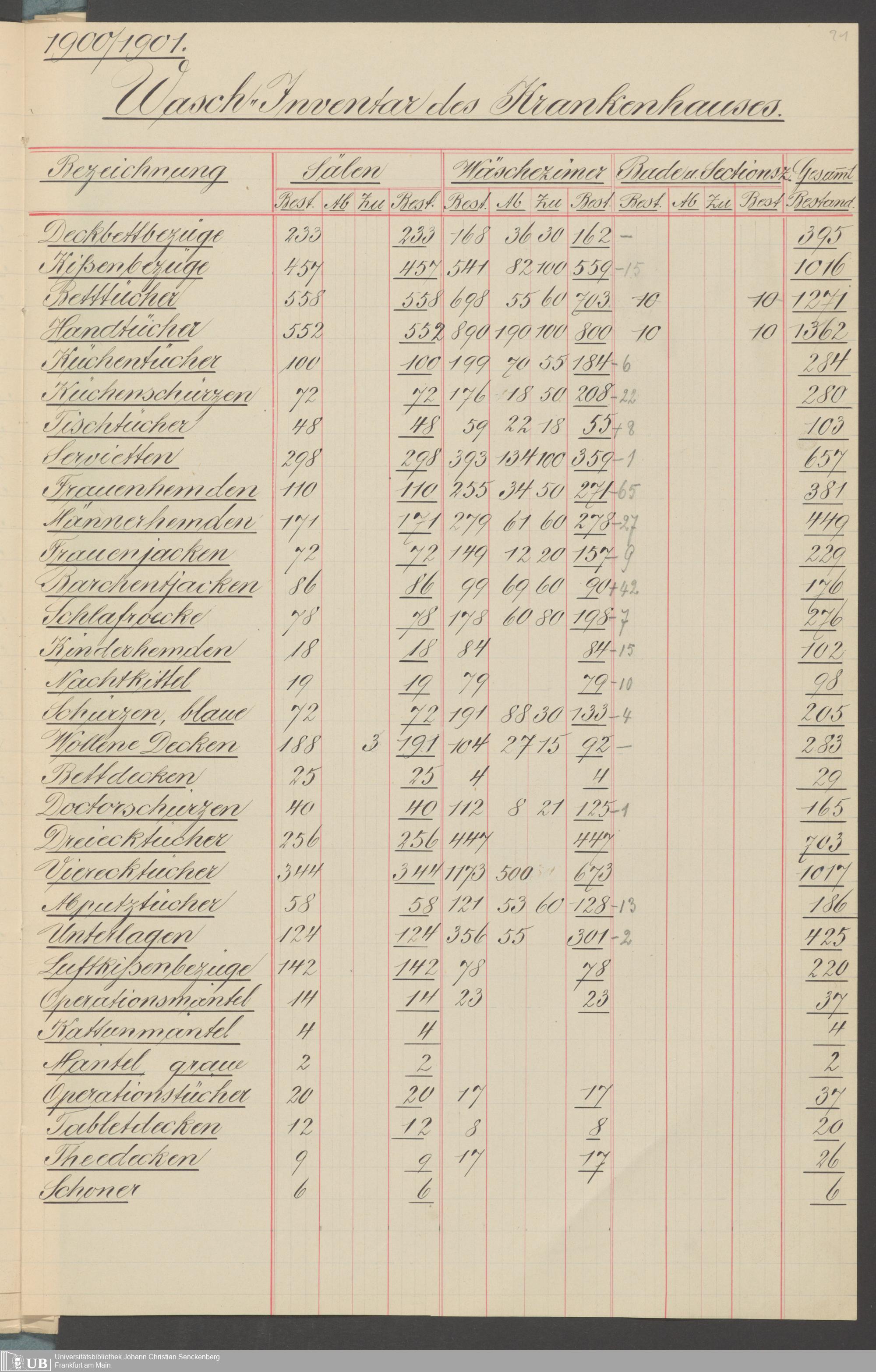 B 5 Dr. Senckenbergische Stiftung, 210 - Wäsche und Geschirrinventare des Krankenhauses und der Pfründner