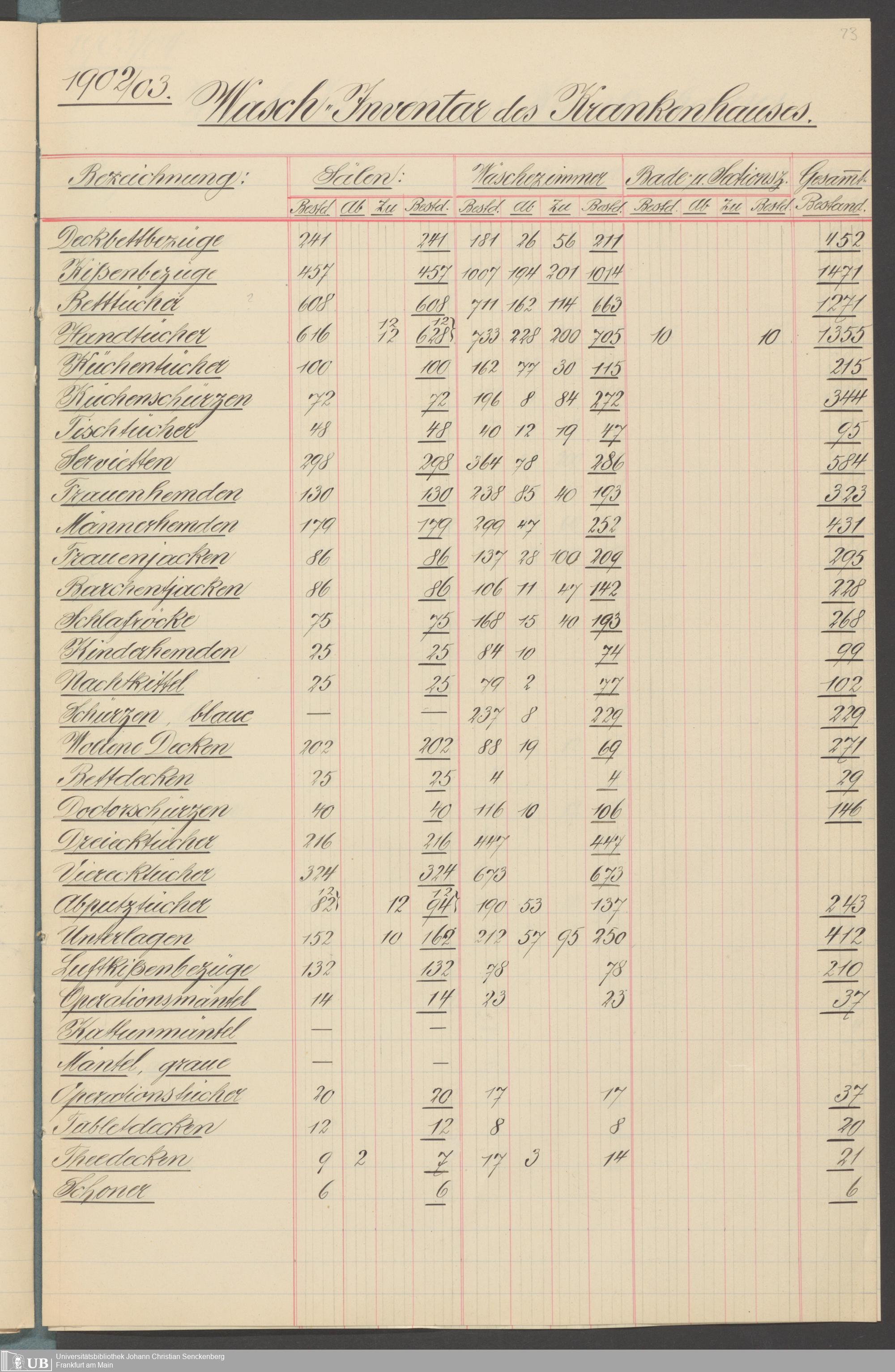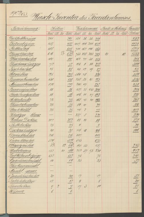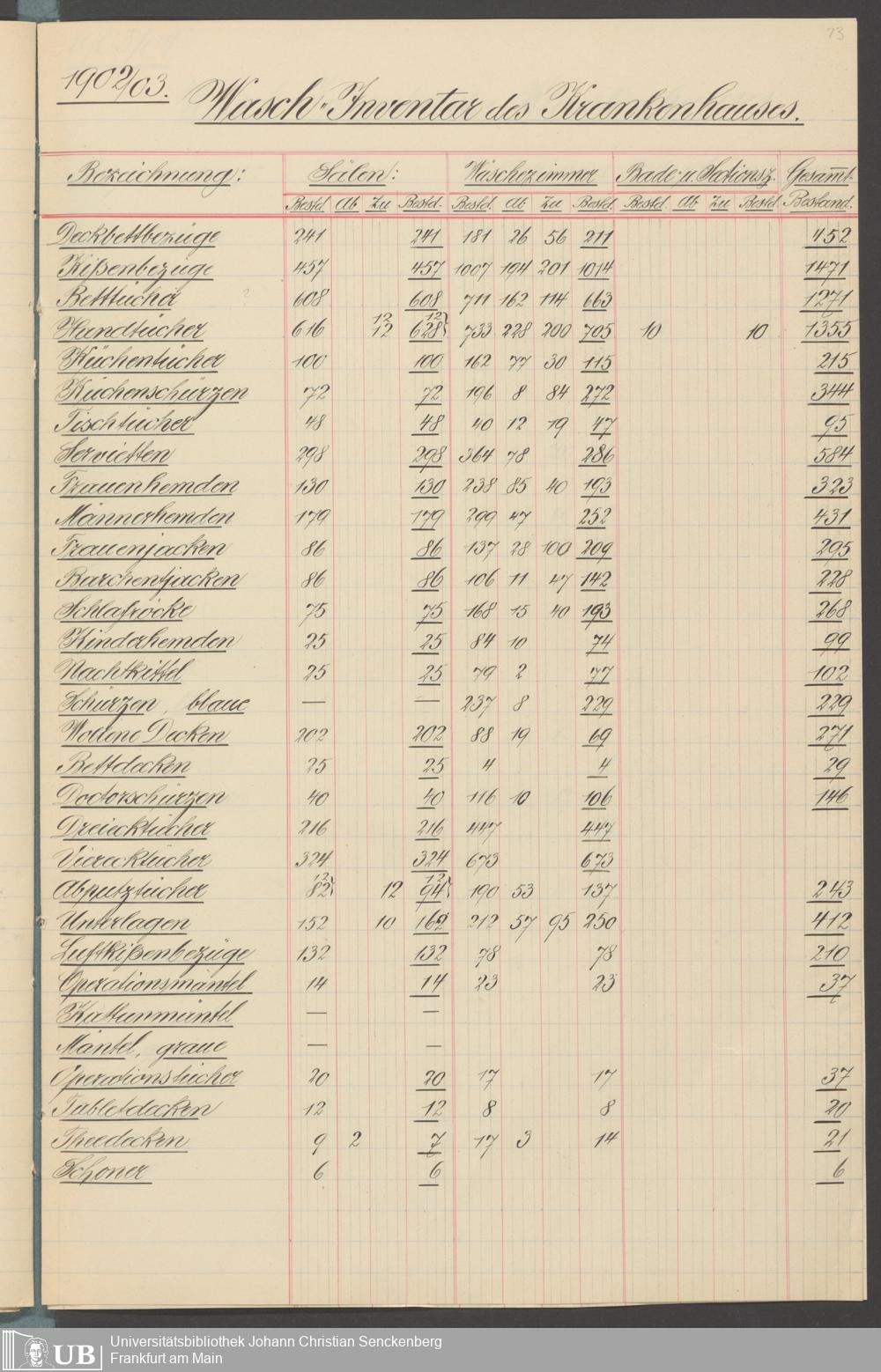 B 5 Dr. Senckenbergische Stiftung, 210 - Wäsche und Geschirrinventare des Krankenhauses und der Pfründner