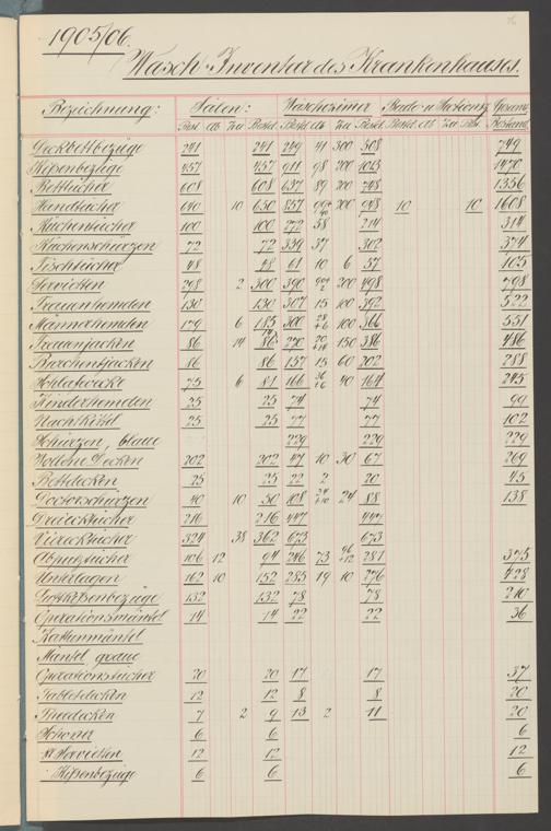 B 5 Dr. Senckenbergische Stiftung, 210 - Wäsche und Geschirrinventare des Krankenhauses und der Pfründner