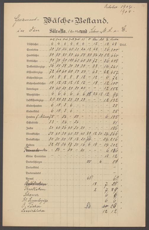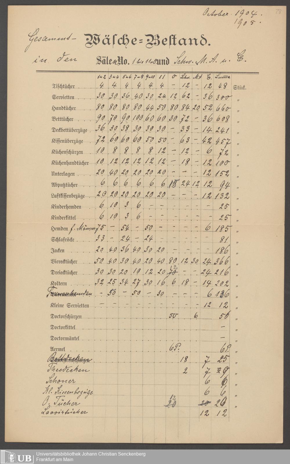 B 5 Dr. Senckenbergische Stiftung, 210 - Wäsche und Geschirrinventare des Krankenhauses und der Pfründner
